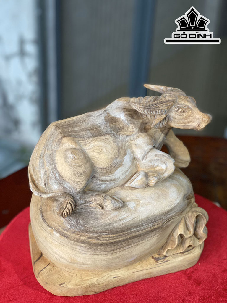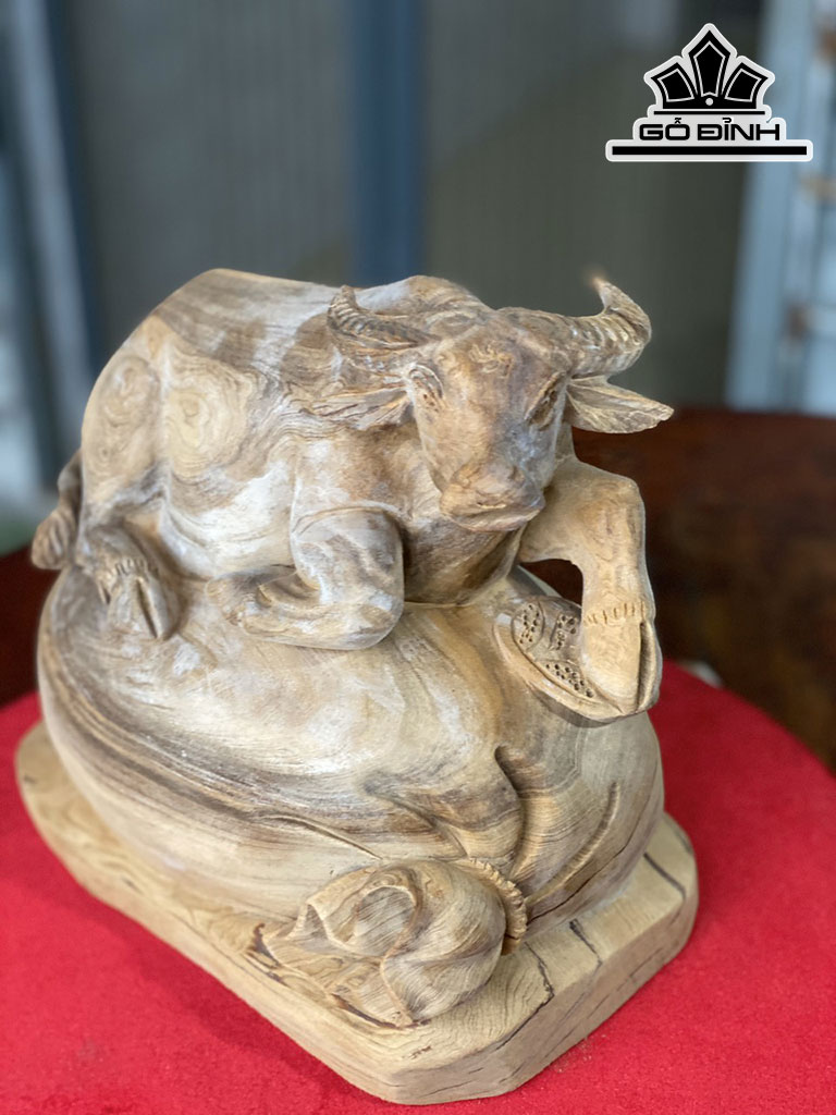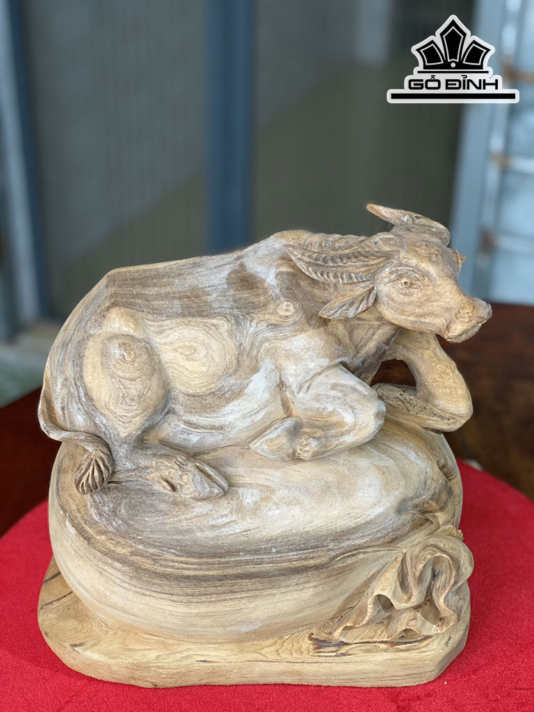 Tượng Trâu Phong Thủy Gỗ Ngọc Am Cao 26 Ngang 26 Sâu 17 (cm)