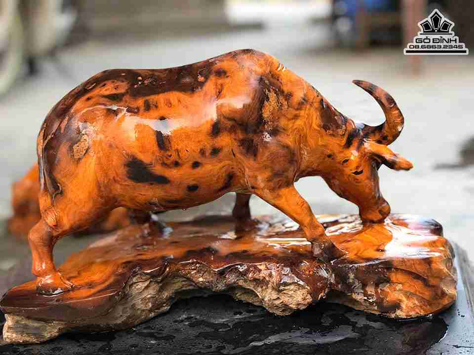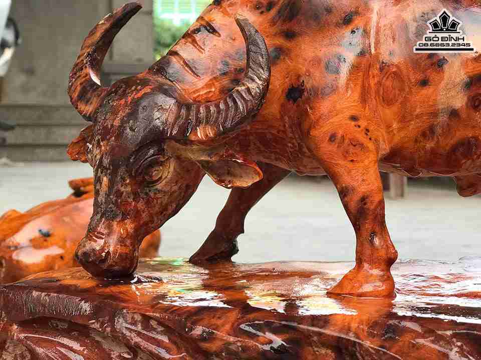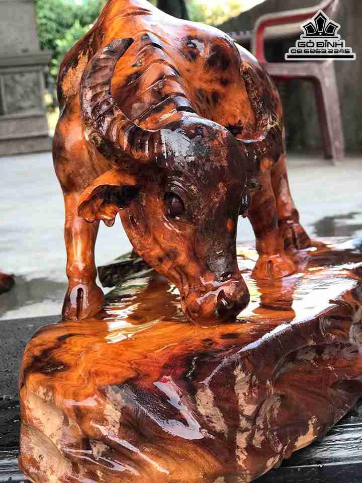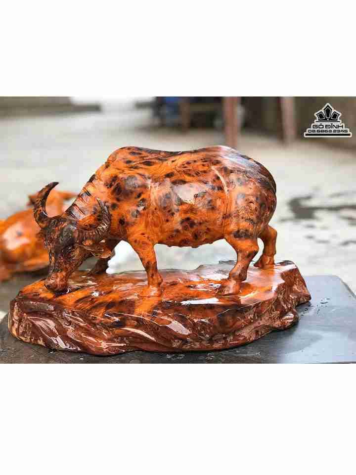 Tượng Trâu Phong Thủy Gỗ Nu Nghiến Cao 25 Ngang 41 Sâu 21 (cm)