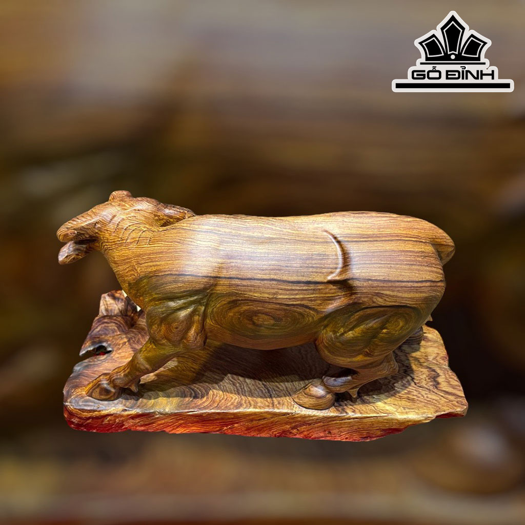 Tượng Trâu Tài Lộc Gỗ Cẩm Cao 21 Ngang 36 Sâu 18 (cm)