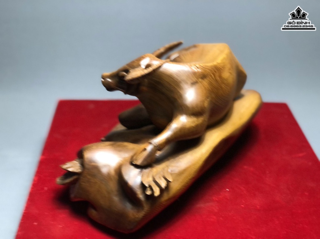 Tượng Trâu Tài Lộc Gỗ Ngọc Am Cao 22 Ngang 38 Sâu 20 (cm)