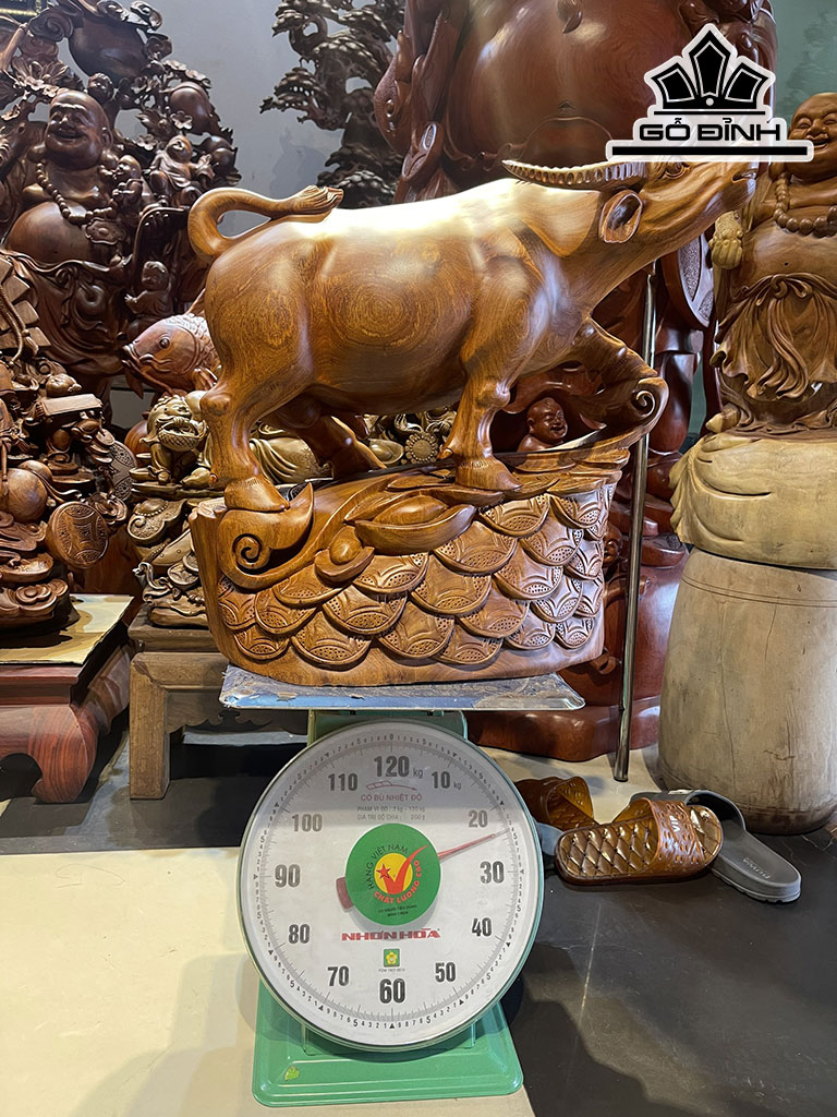 Tượng Trâu Vàng Tài Lộc Gỗ Hương Cao 52 Ngang 55 Sâu 25 (cm)