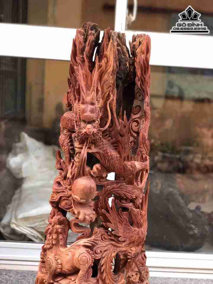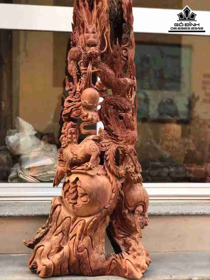 Tượng Tứ Linh gỗ hương cao 1m30 rộng 56 dày 30 (cm)
