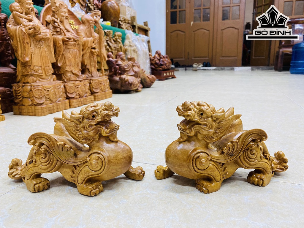 Tượng Tỳ Hưu Gỗ Bách Xanh Cao 12 Ngang 20 Sâu 8 (cm)