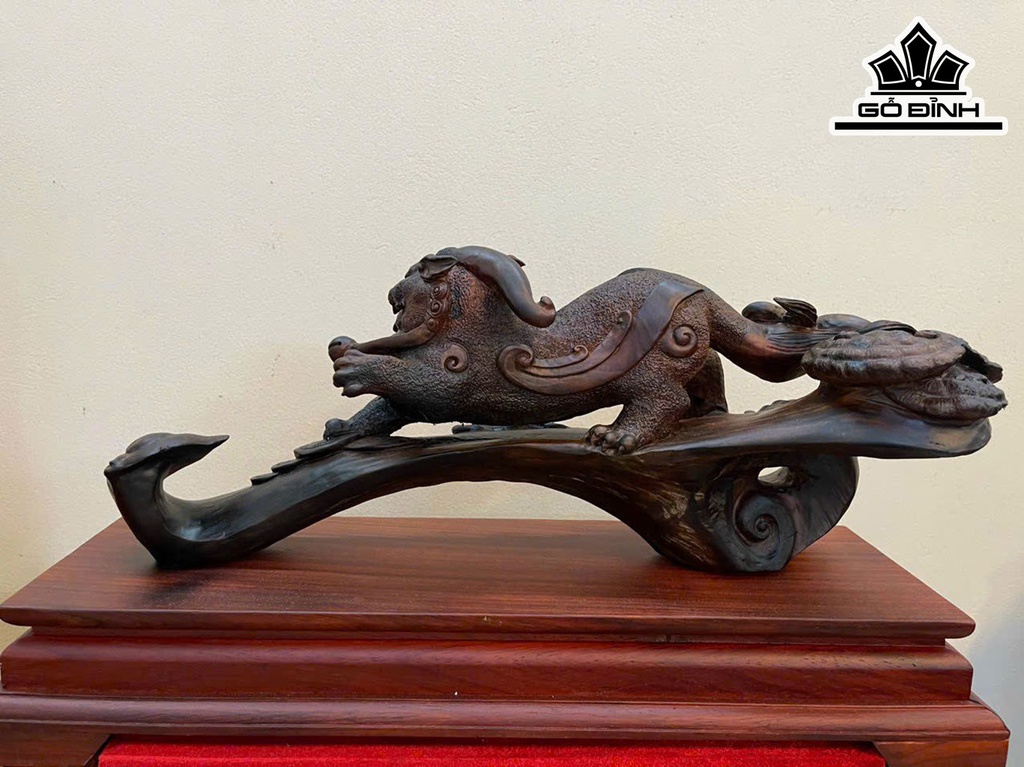 Tượng Tỳ Hưu Gỗ Trắc Cao 28 Ngang 50 Sâu 15 (cm)
