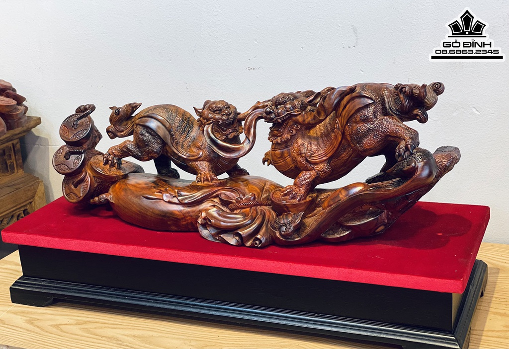 Tượng Tỳ Hưu Gỗ Trắc Nguyên Khối Cao 22 Ngang 60 Sâu 18 (cm)