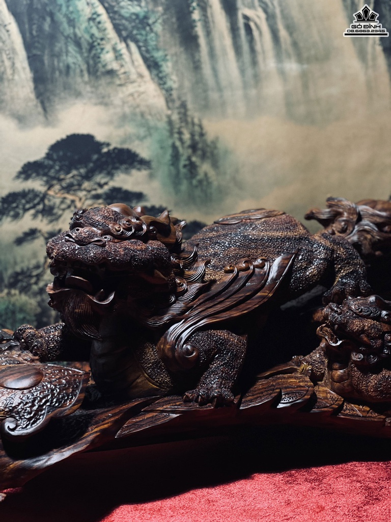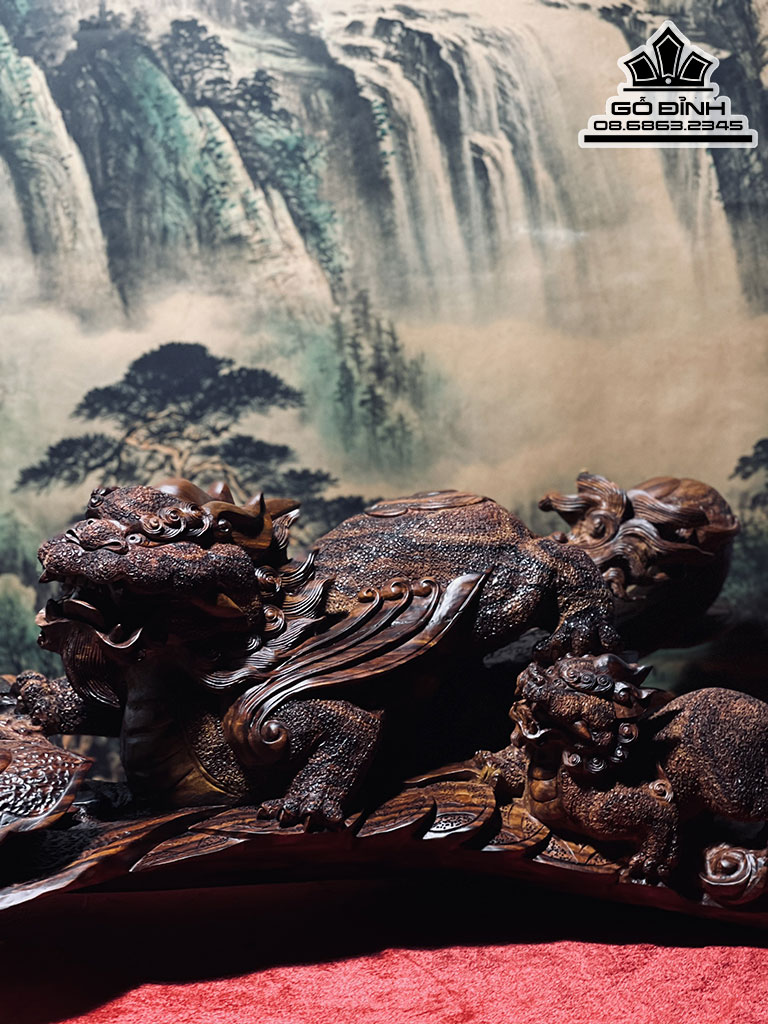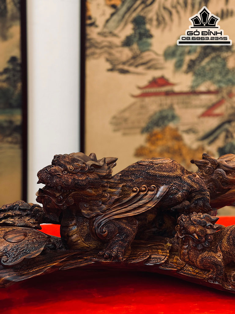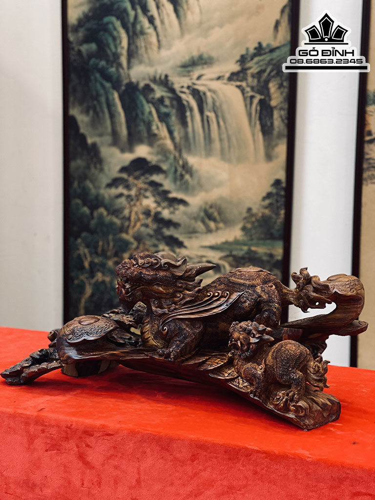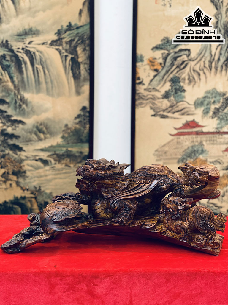 Tượng Tỳ Hưu Mẫu Tử Gỗ Sưa Bắc