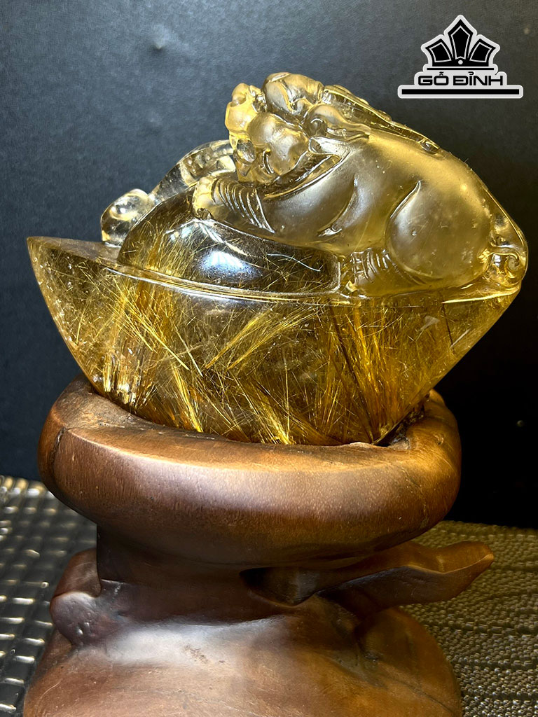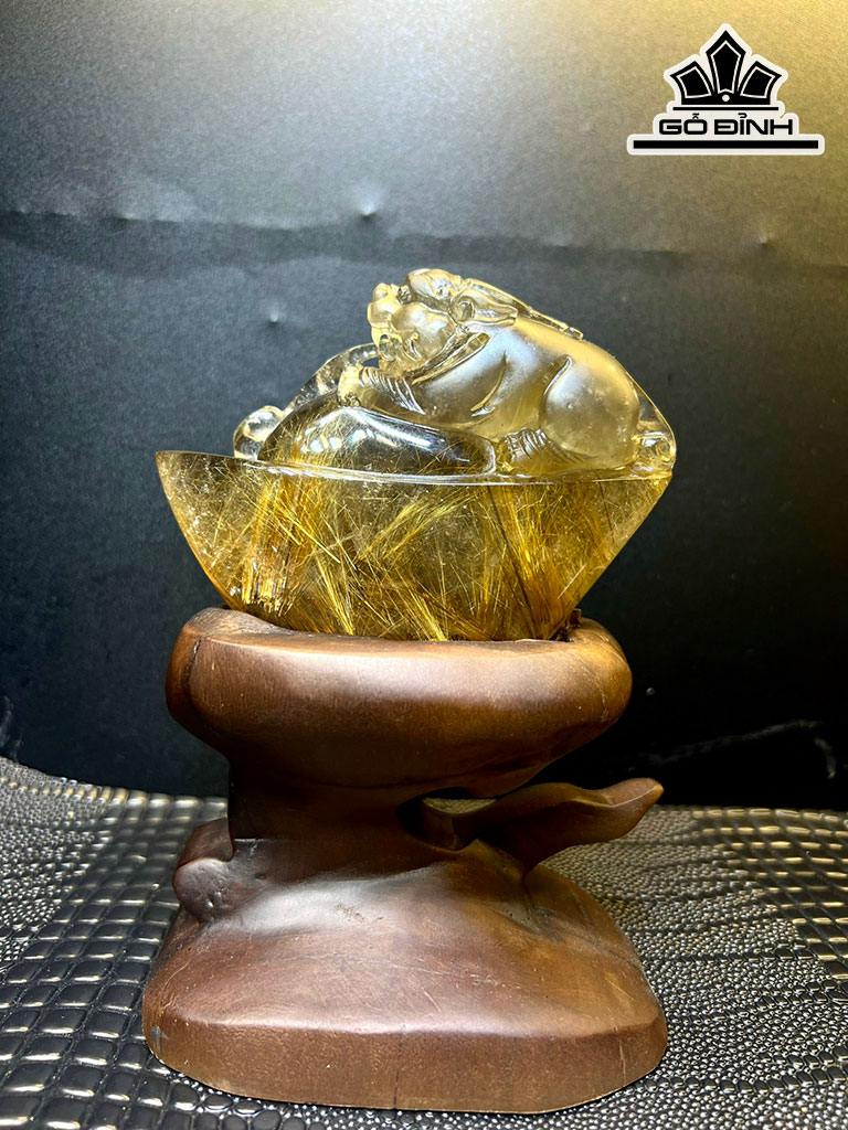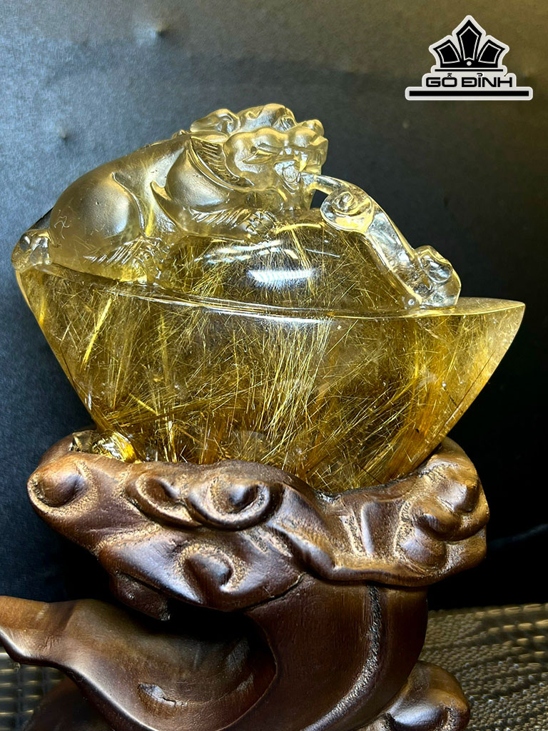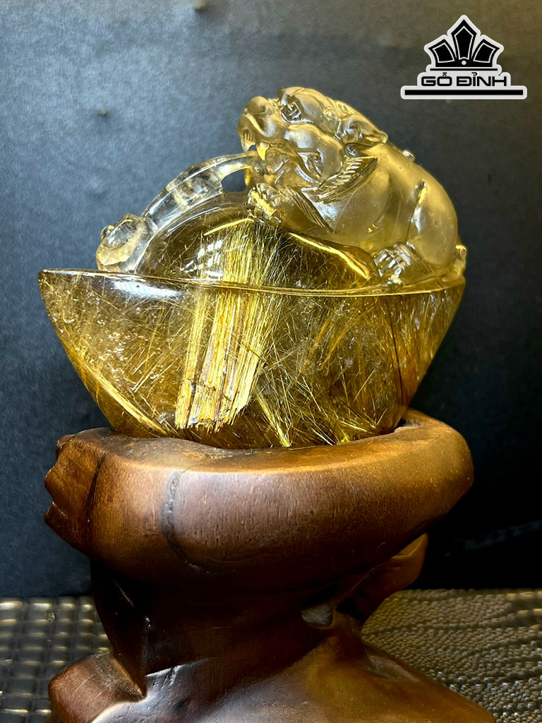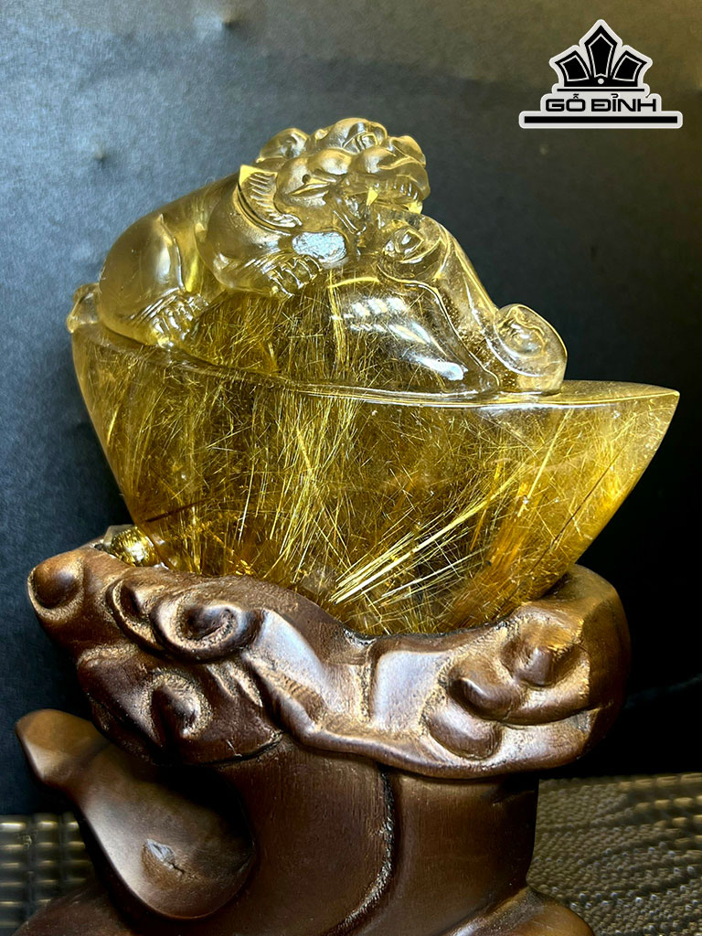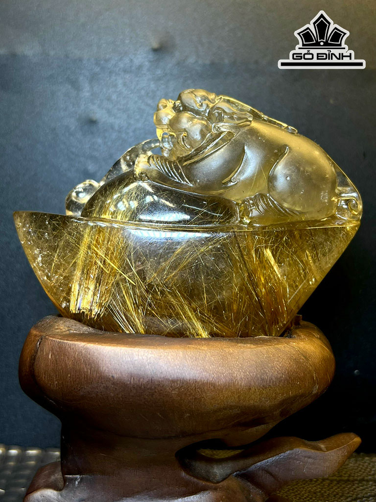 Tượng Tỳ Hưu Ôm Kim Nguyên Bảo Đá Thạch Anh Tóc Vàng