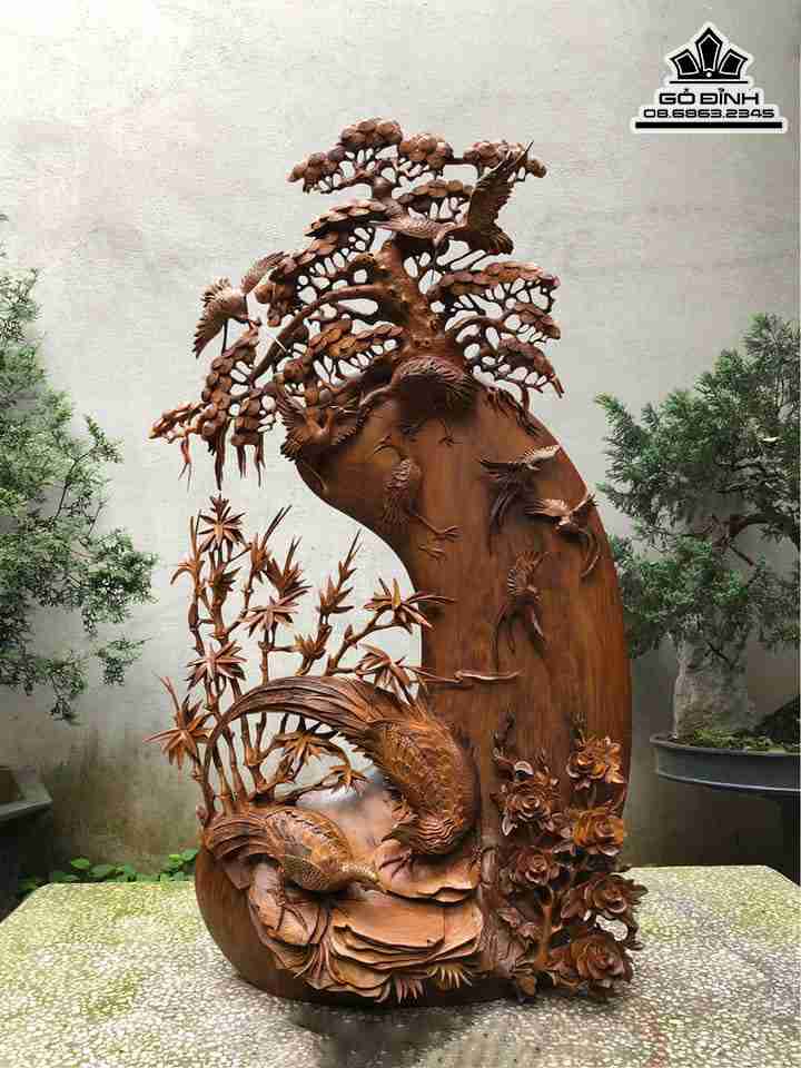 Tượng Uyên Ương Gỗ Bách Xanh Cao 106 Ngang 60 Sâu 21 (cm)
