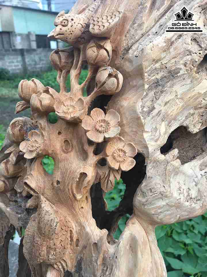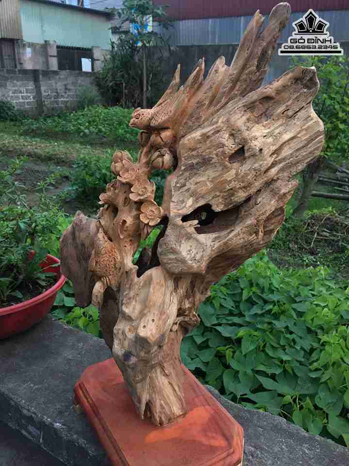 Tượng Uyên Ương Gỗ Ngọc Am Cao 56 Ngang 36 Sâu 25 (cm)