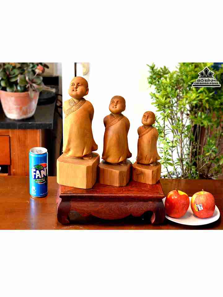 Tượng Vạn Sự Tùy Duyên Gỗ Bách Xanh Cao Nhất 30 -25-20 (cm)