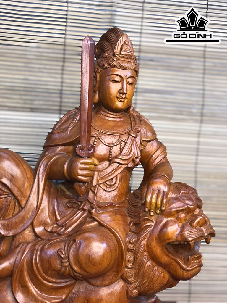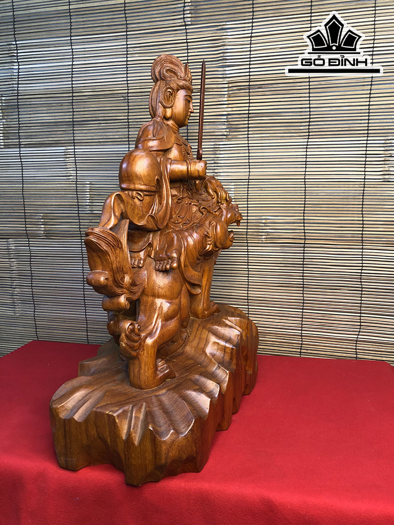 Tượng Văn Thù Bồ Tát Gỗ Hương Cao 50 Ngang 40 Sâu 19 (cm)