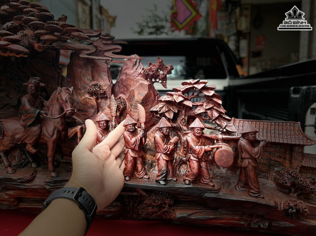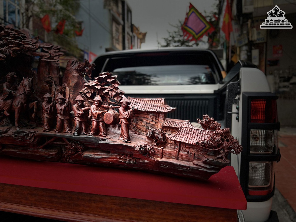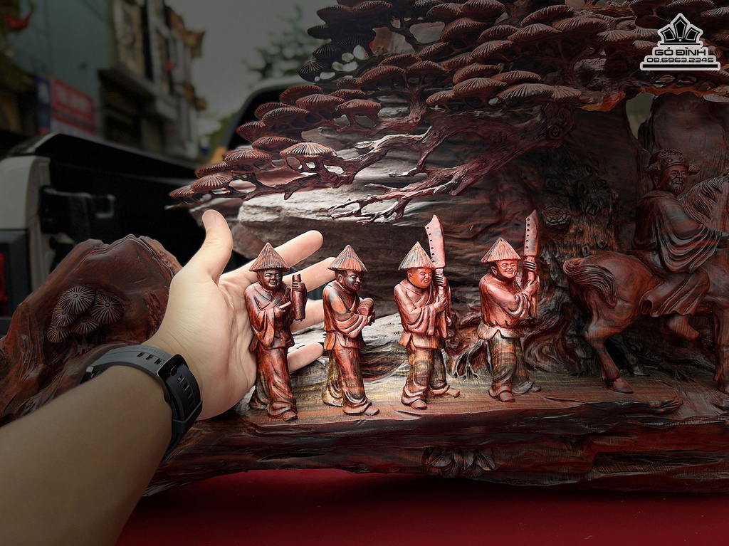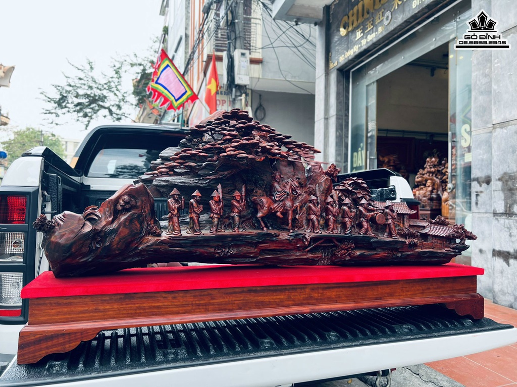 Tượng Vinh Quy Bái Tổ Gỗ Trắc Liền Khối