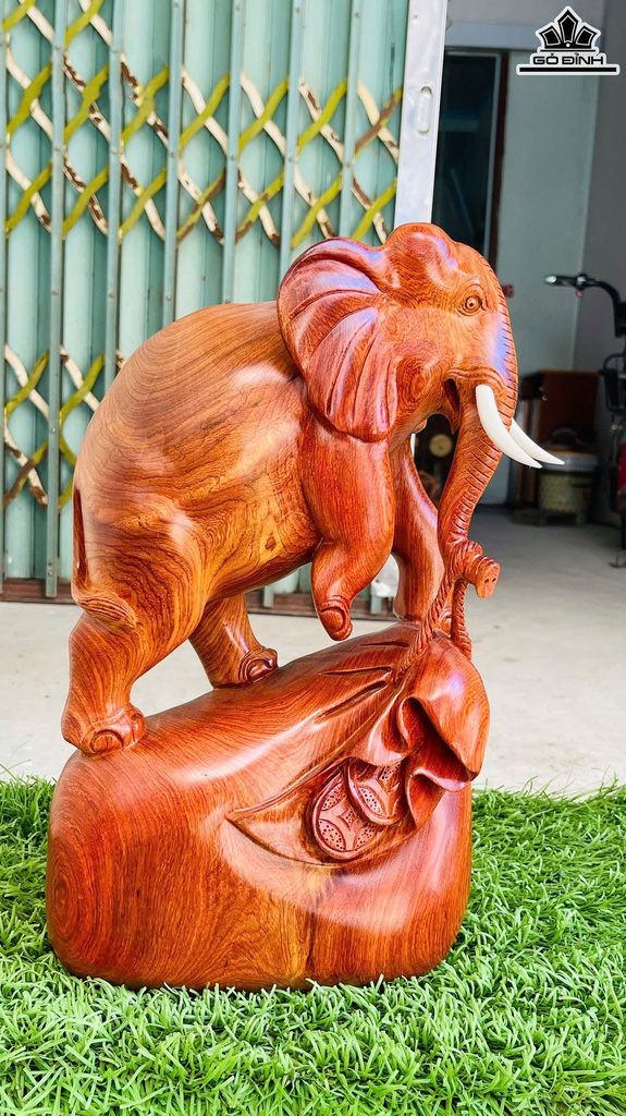 Tượng Voi Gỗ Hương Cao 44 Ngang 24 Sâu 13 (cm)