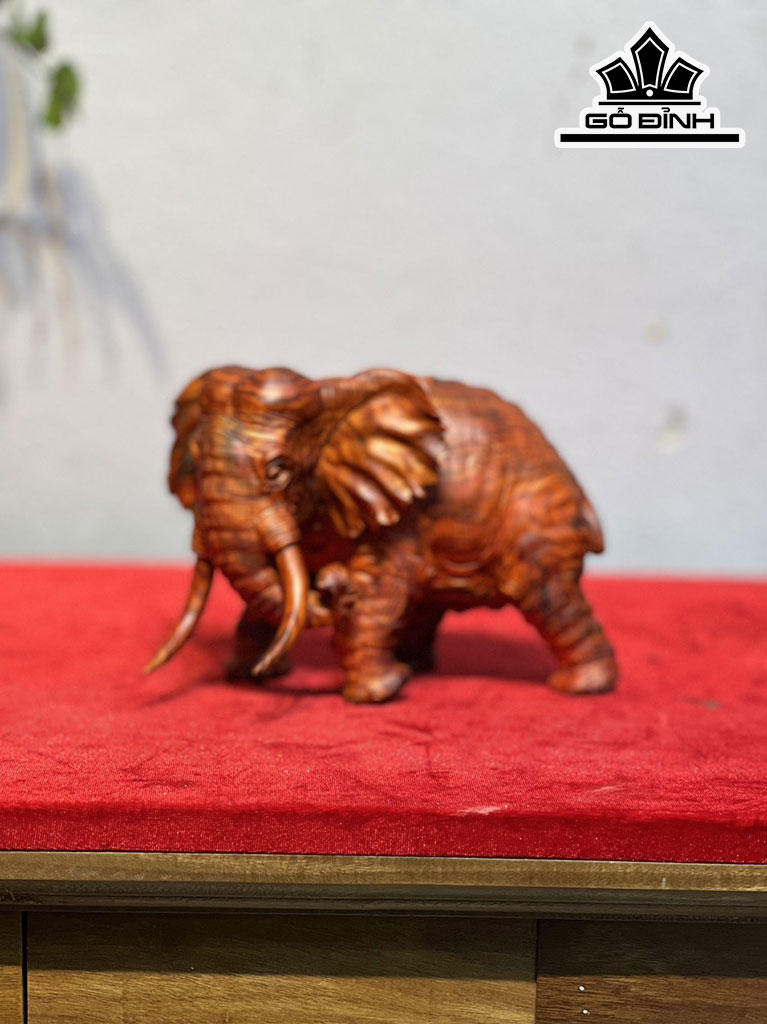 Tượng Voi Gỗ Trắc Cao 11 Ngang 17 Sâu 11 (cm)