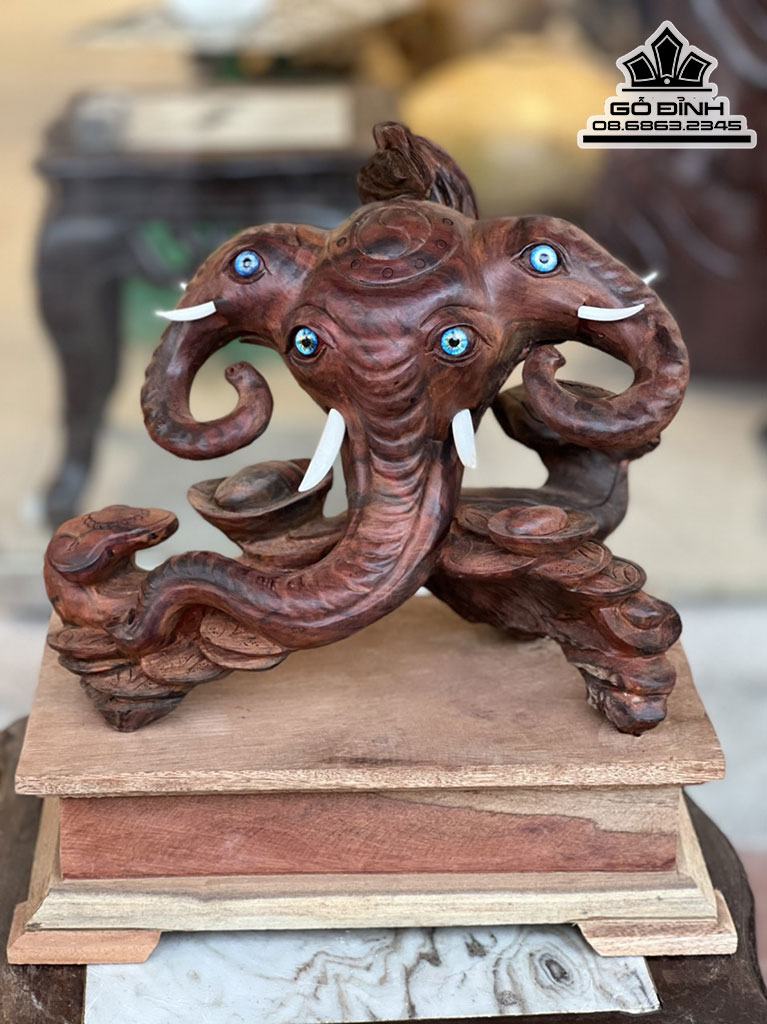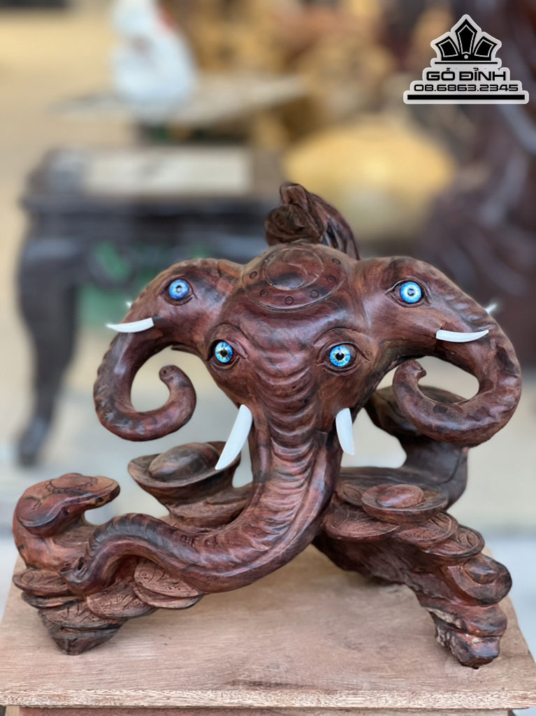 Tượng Voi Gỗ Trắc Cao 26 Ngang 32 Sâu 18 Cả Kỷ Cao 36(cm)