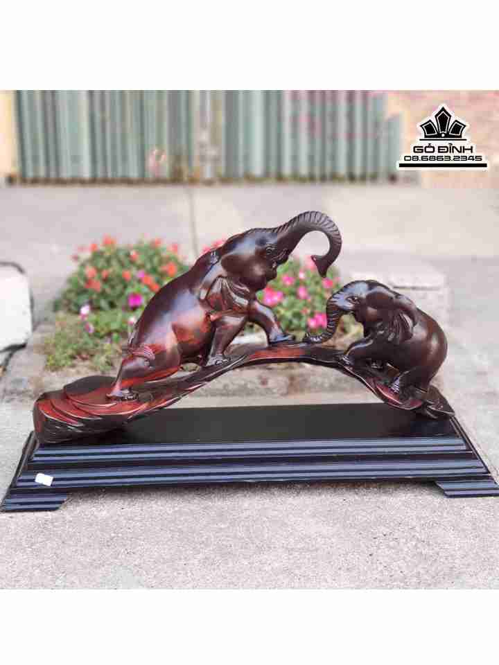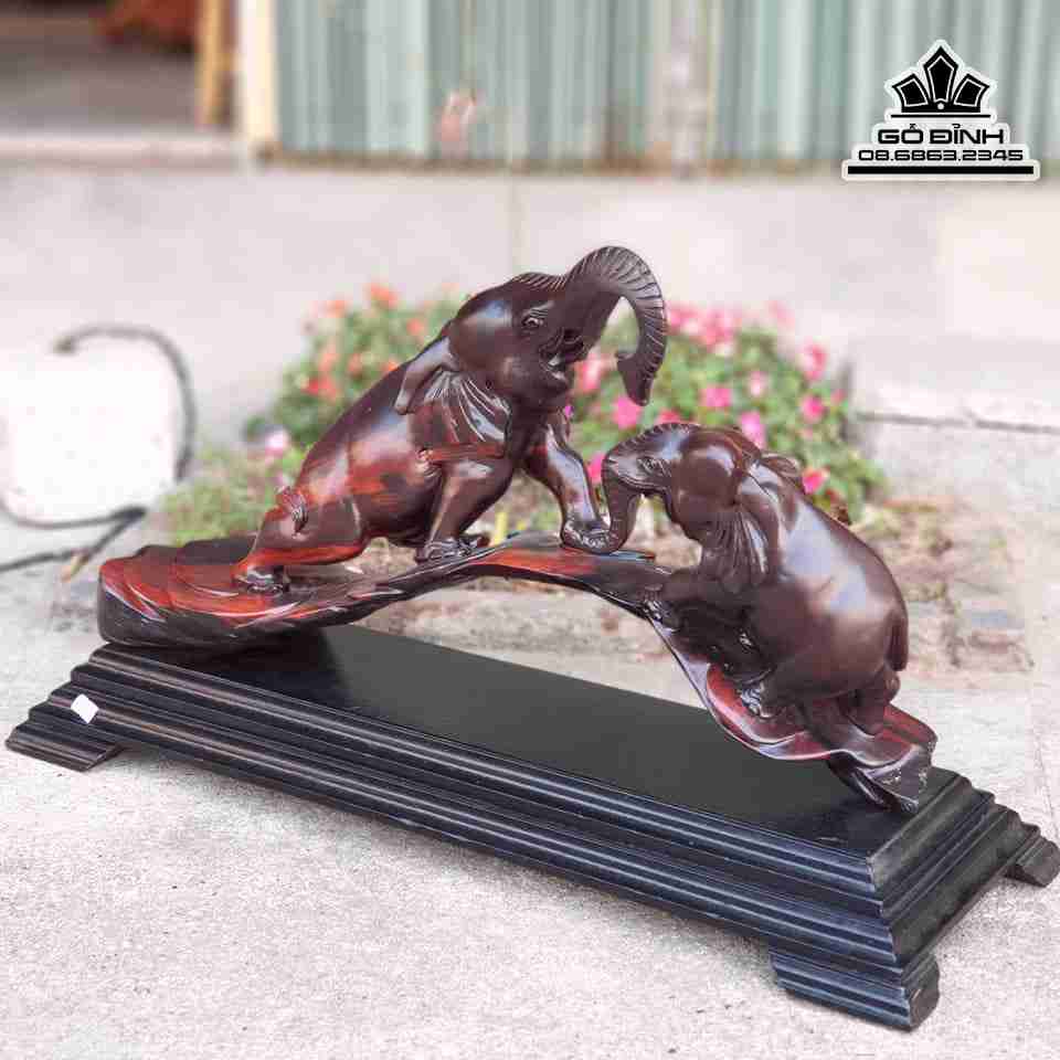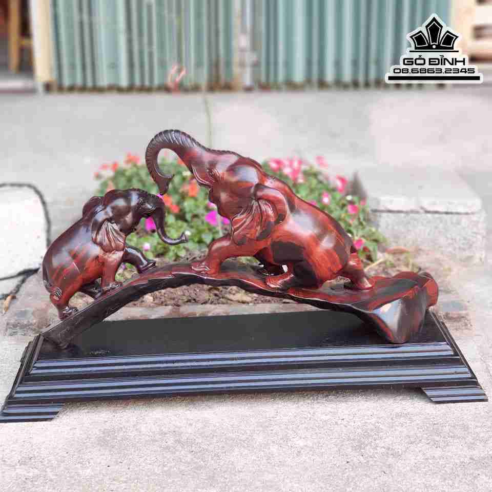 Tượng Voi Gỗ Trắc Đỏ Đen Cao 30 Ngang 60 Dày 15 (cm)