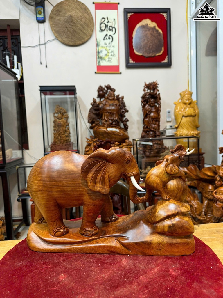 Tượng Voi Mẫu Tử Gỗ Hương