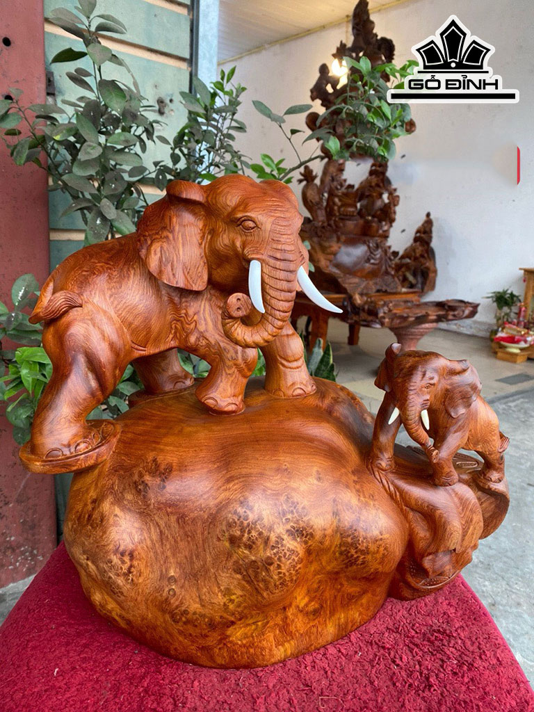 Tượng Voi Mẫu Tử Gỗ Hương Cao 38 Ngang 43 Sâu 26 (cm)