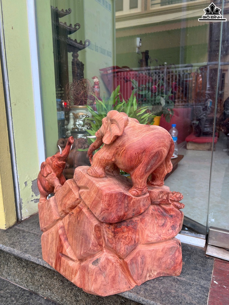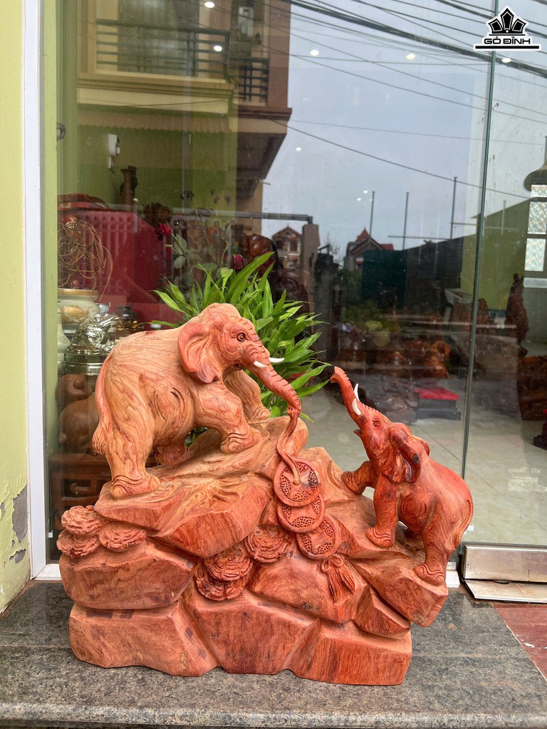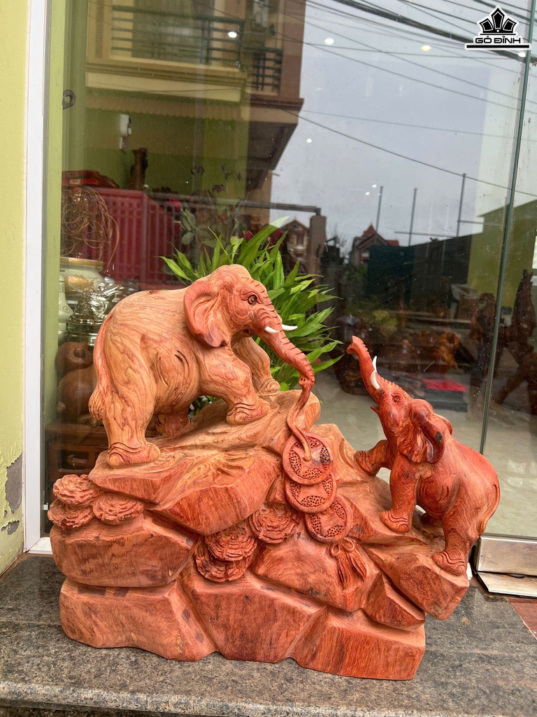 Tượng Voi Mẫu Tử Gỗ Hương Cao 44 Ngang 46 Sâu 20 (cm)
