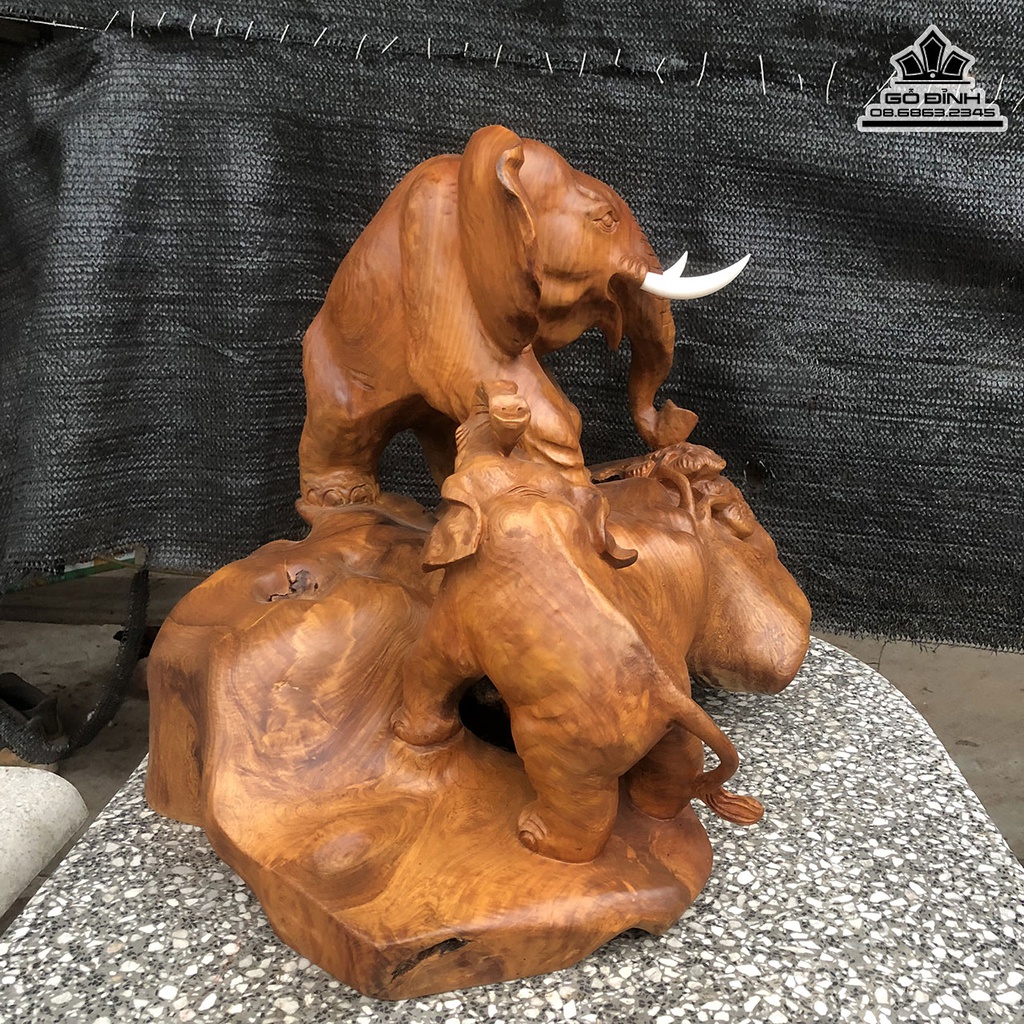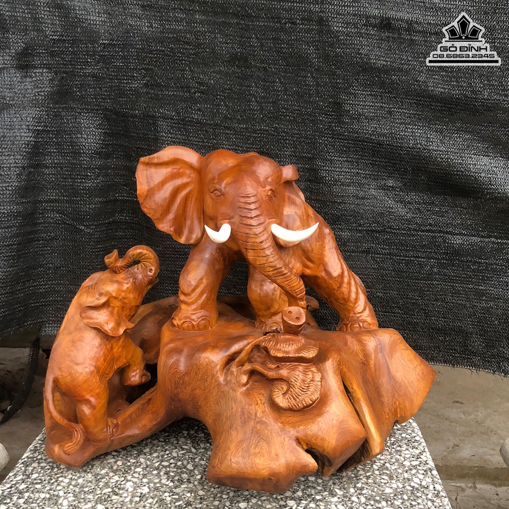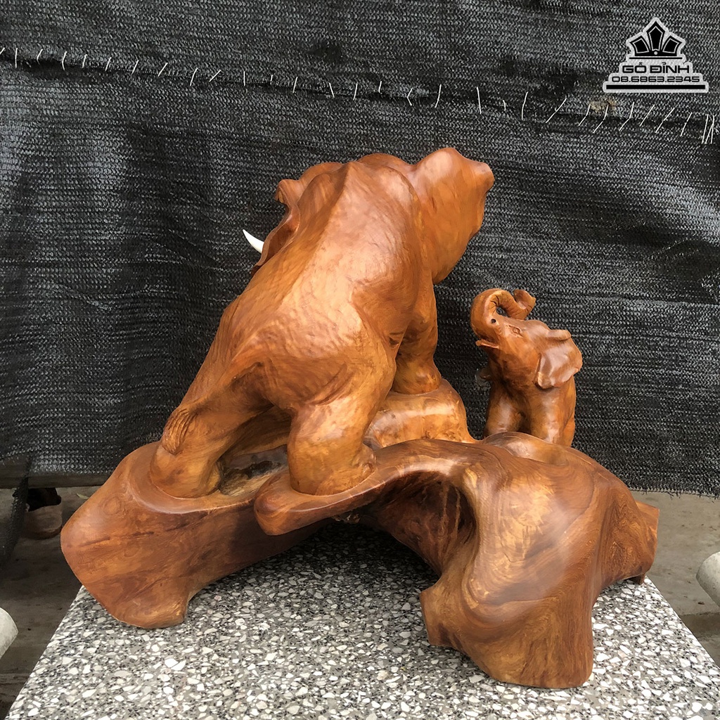 Tượng Voi Mẫu Tử Gỗ Hương Việt