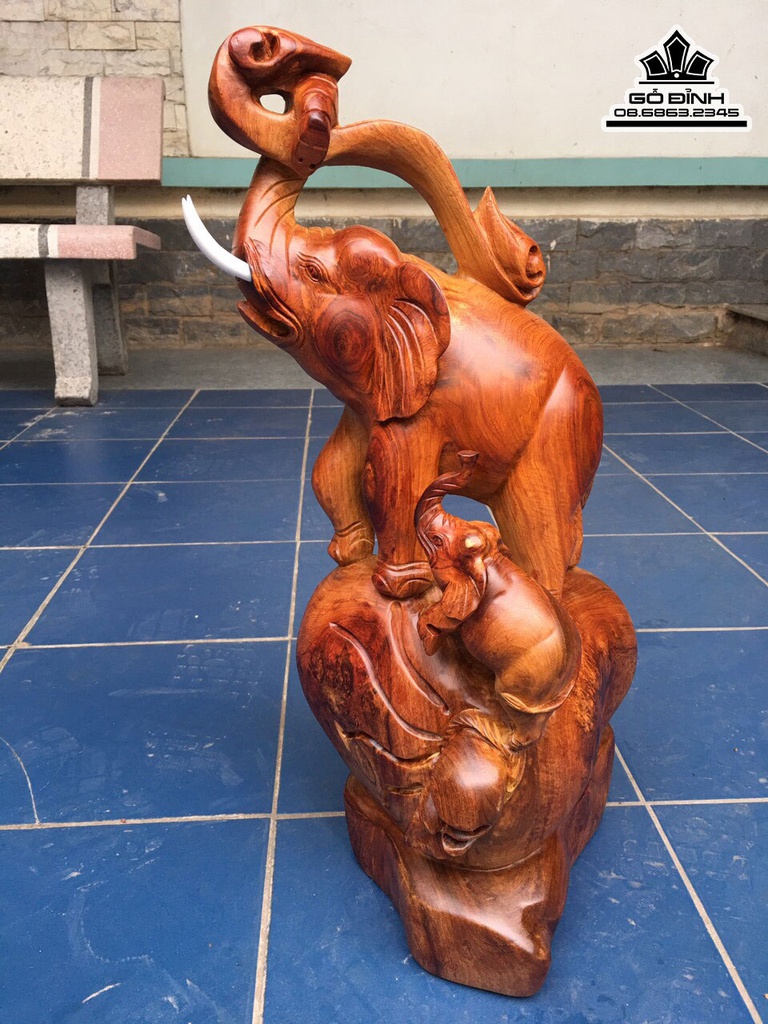 Tượng Voi Mẫu Tử Gỗ Hương Việt Cao 56 Ngang 27 Sâu 21 (cm)