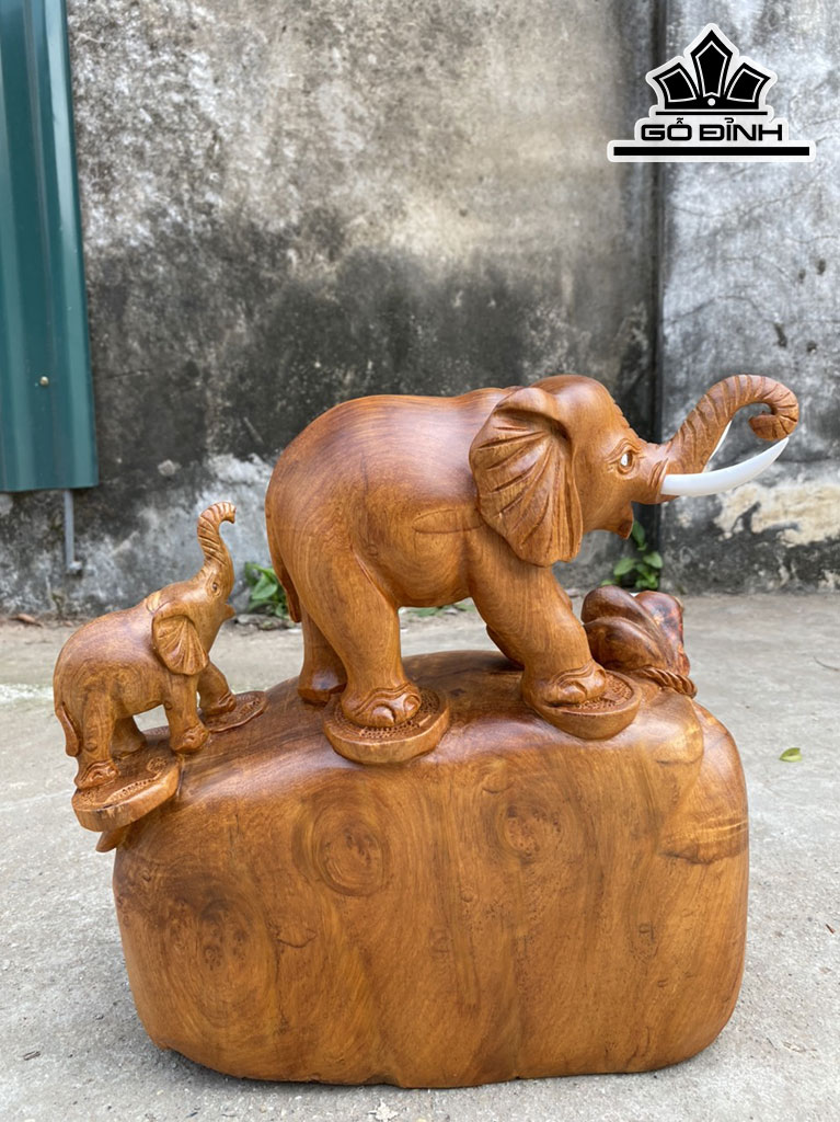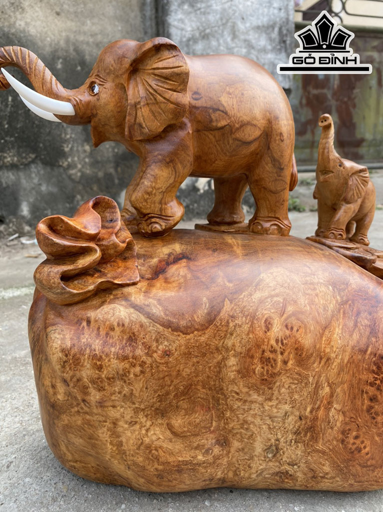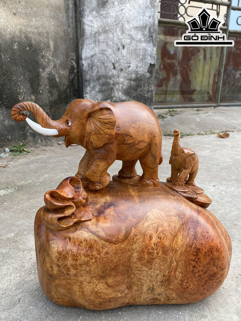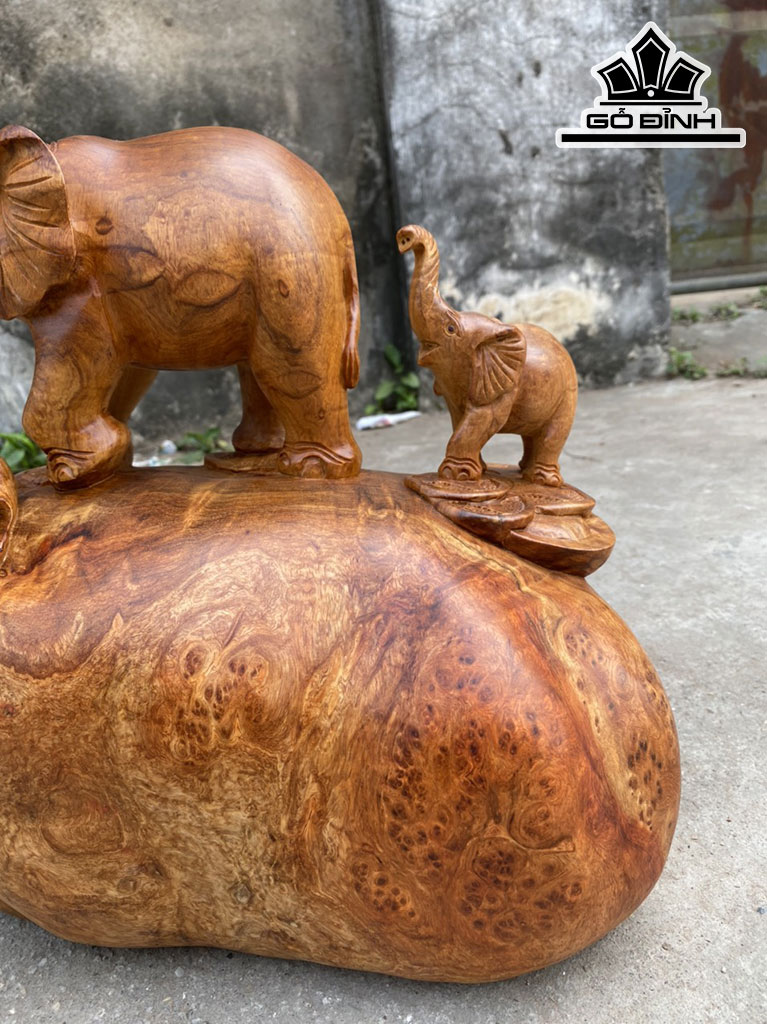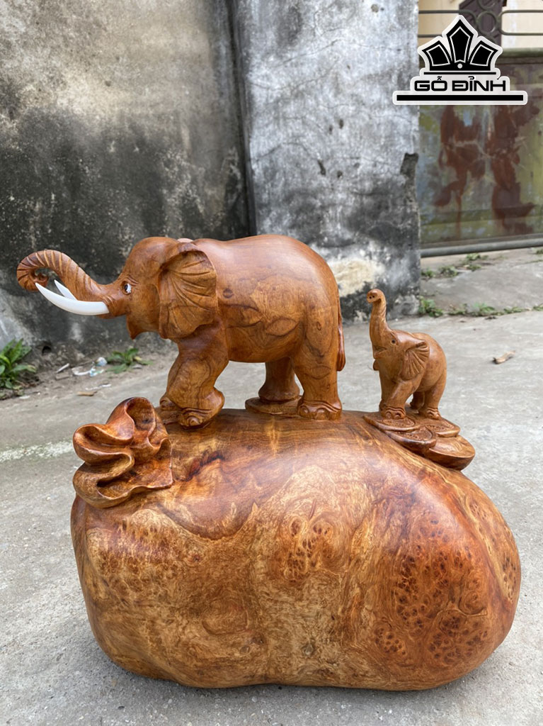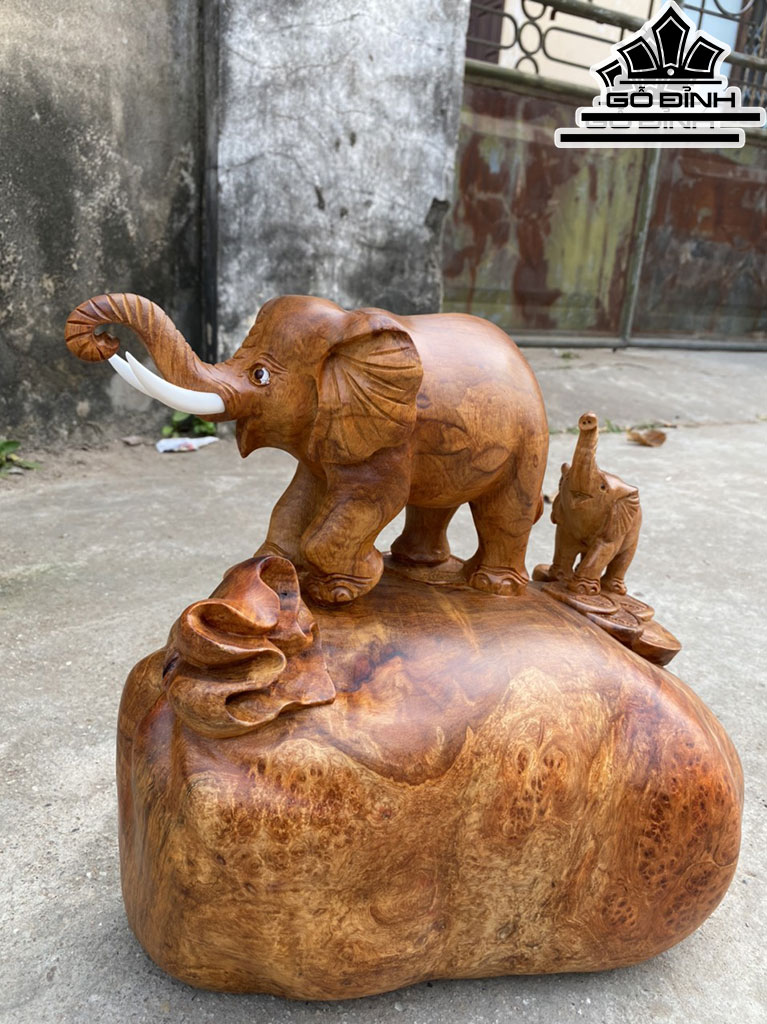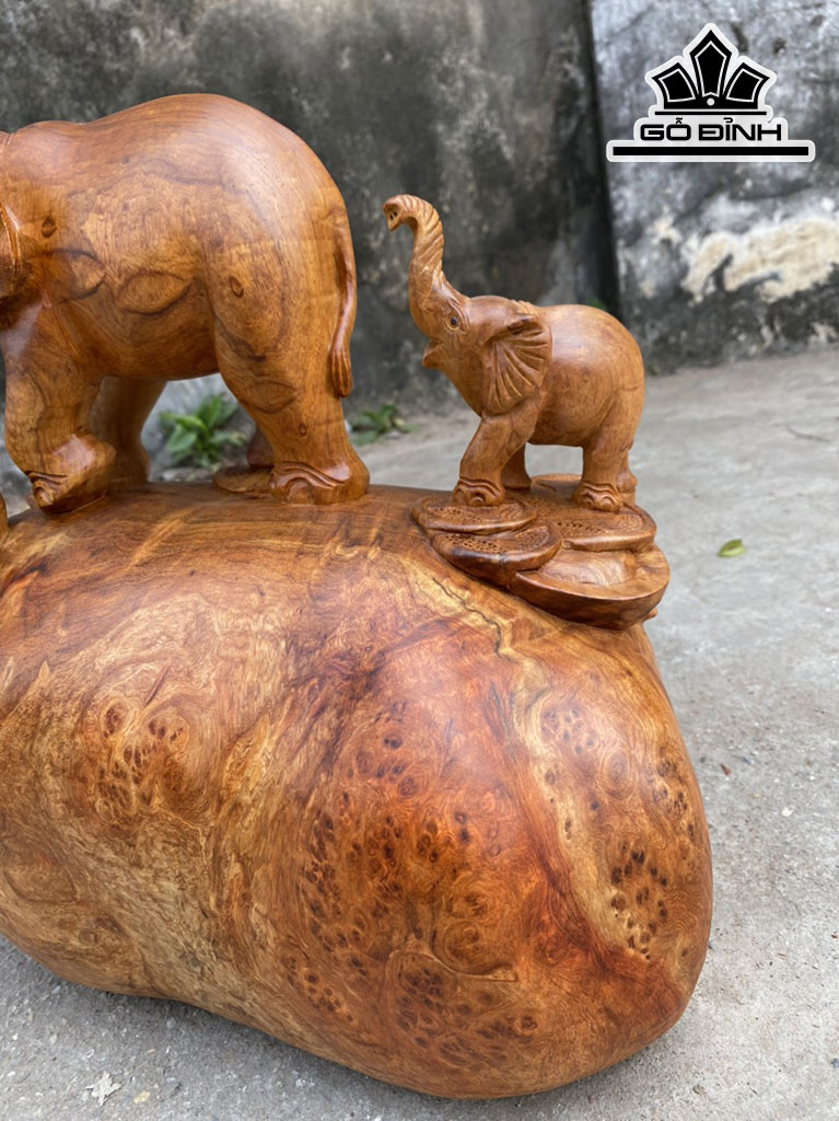 Tượng Voi Mẫu Tử Gỗ Nu Hương Cao 35 Ngang 36 Sâu 20 (cm)