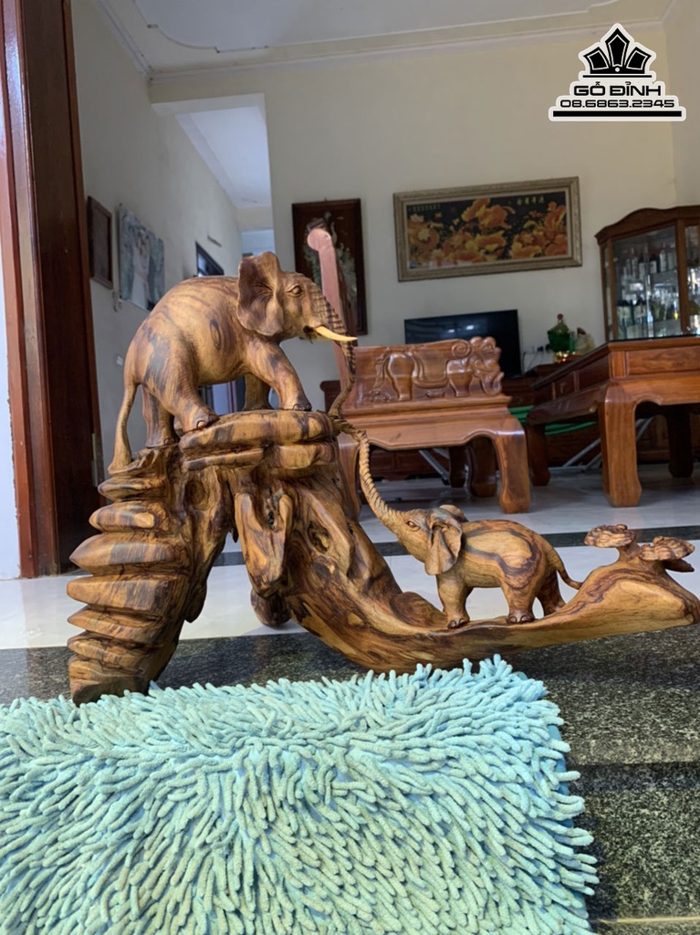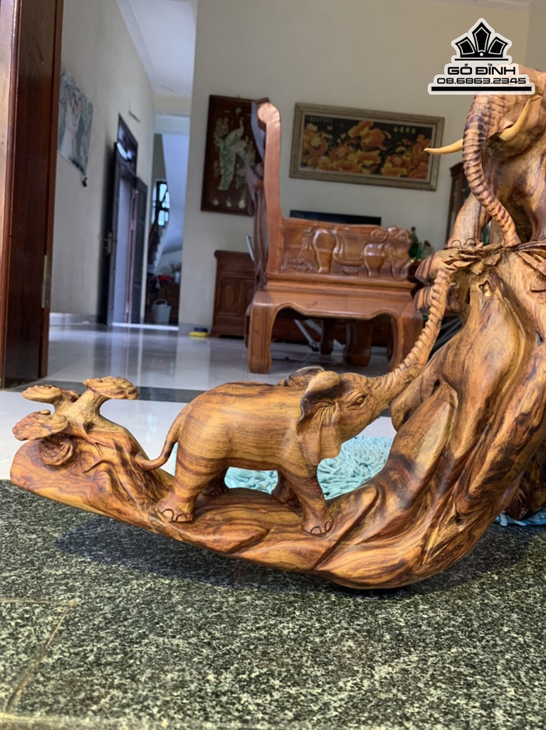 Tượng Voi Mẫu Tử Gỗ Sưa