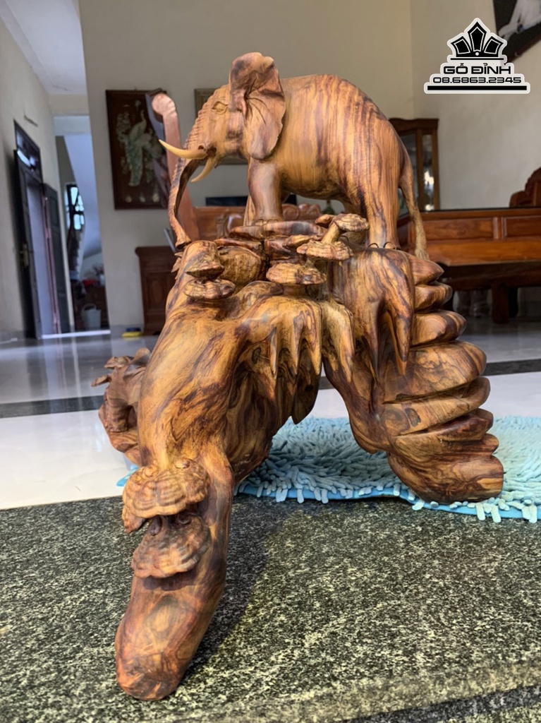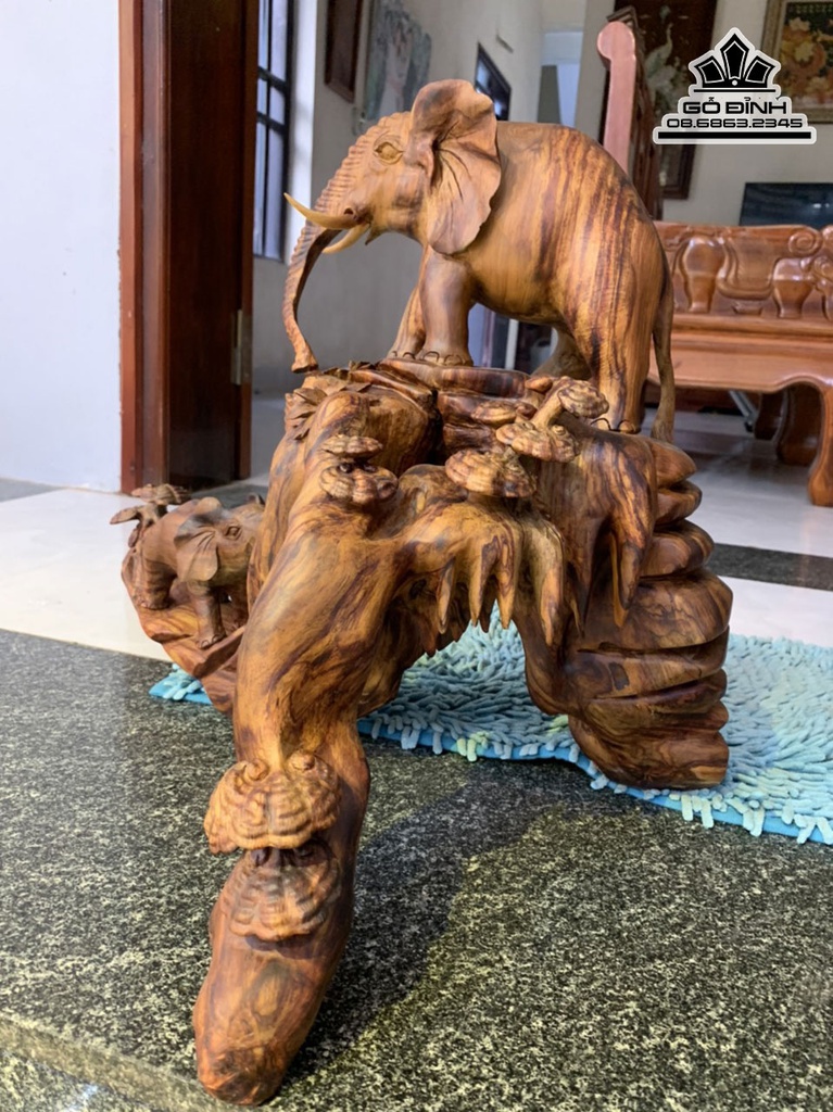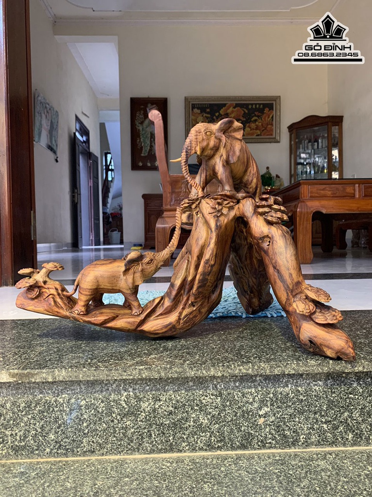Tượng Voi Mẫu Tử Gỗ Sưa Cao 45 Ngang 58 Sâu 40 (cm)