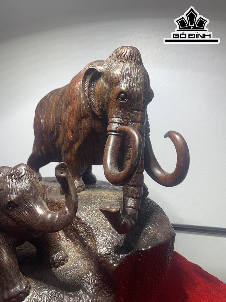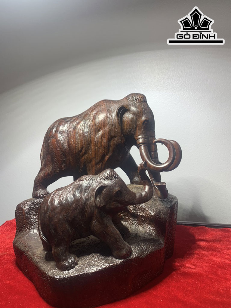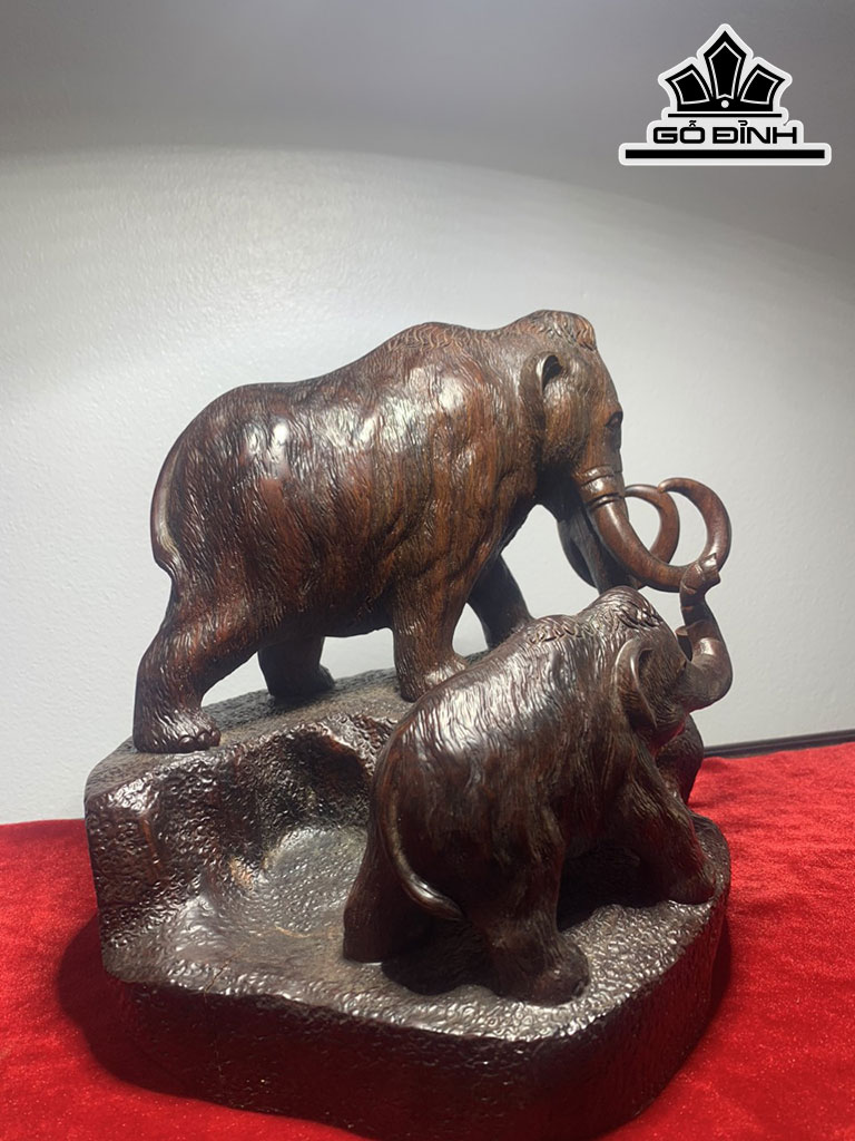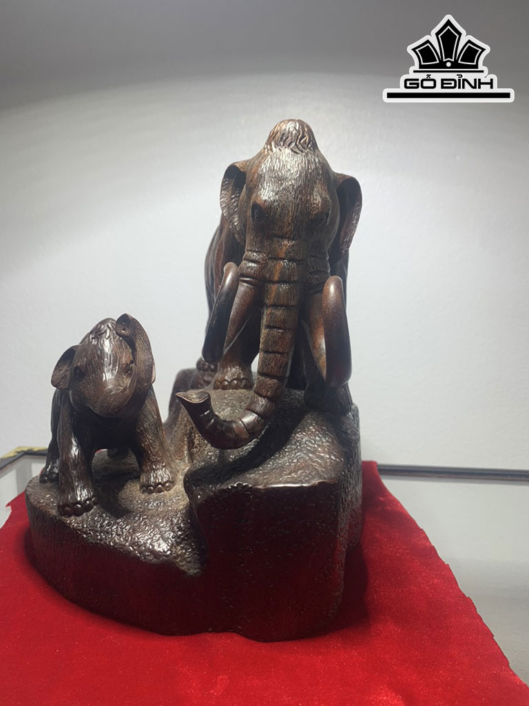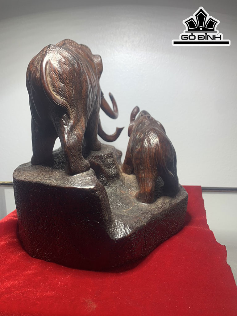 Tượng Voi Mẫu Tử Gỗ Trắc Cao 21 Ngang 22 Sâu 19 (cm)