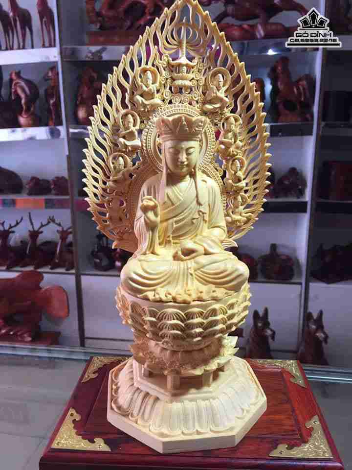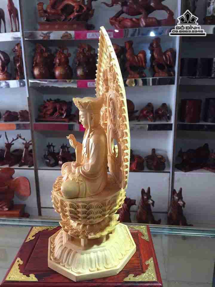 Đường tăng ngồi đài sen gỗ hoàng dương cao 28 ngang 12 sâu 12 (cm)