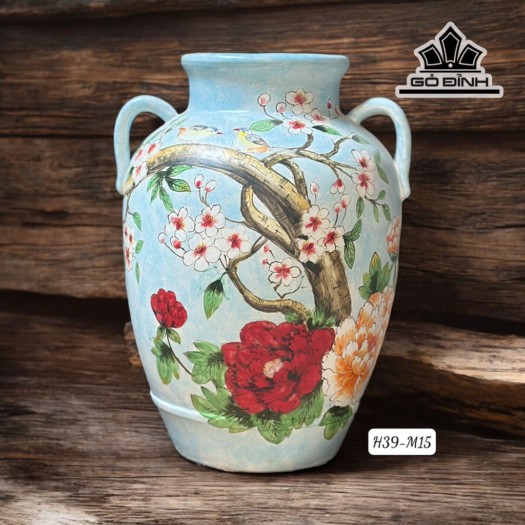 Vò 2 Quai Vẽ Tay Gốm Bát Tràng Cao 39 Miệng 15 (cm)