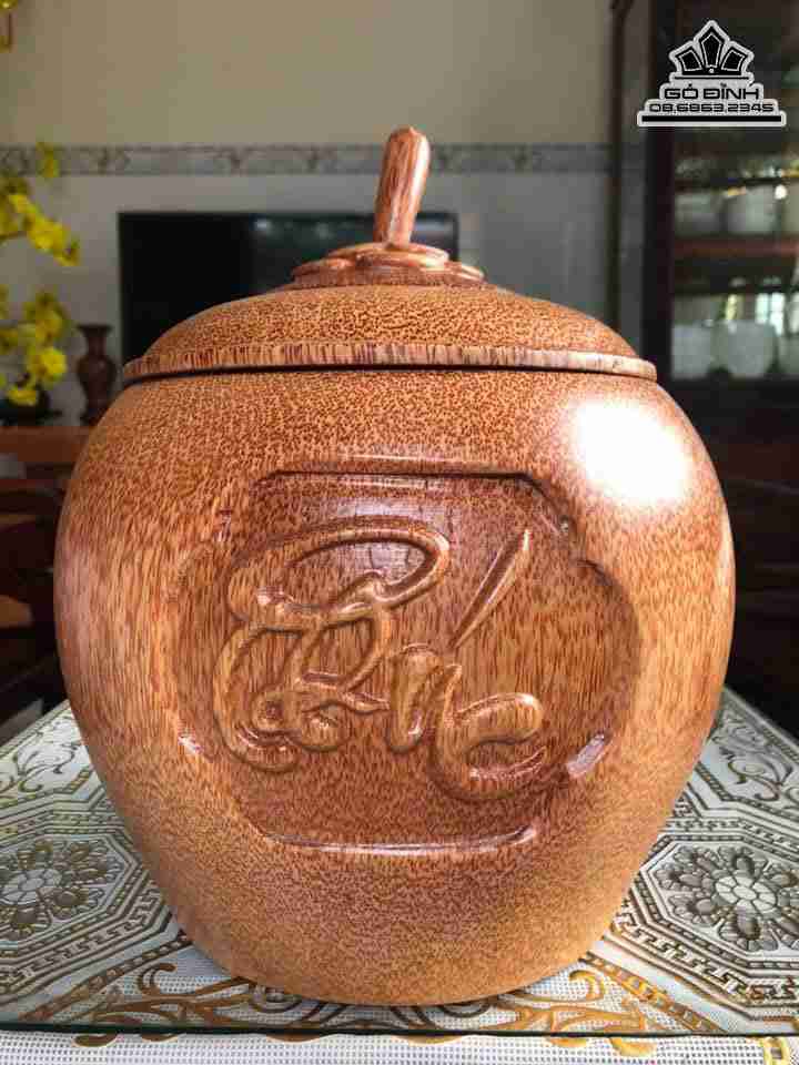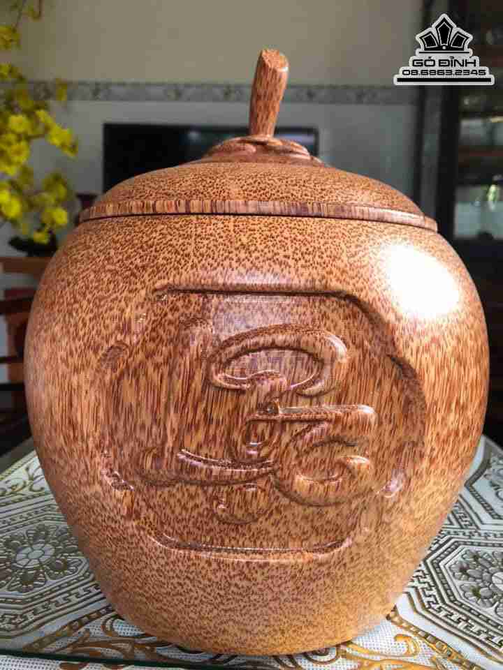 Vỏ Bình Giữ Nhiệt Chữ Phúc Lộc Thọ Gỗ Dừa Loại 1.3 Lít