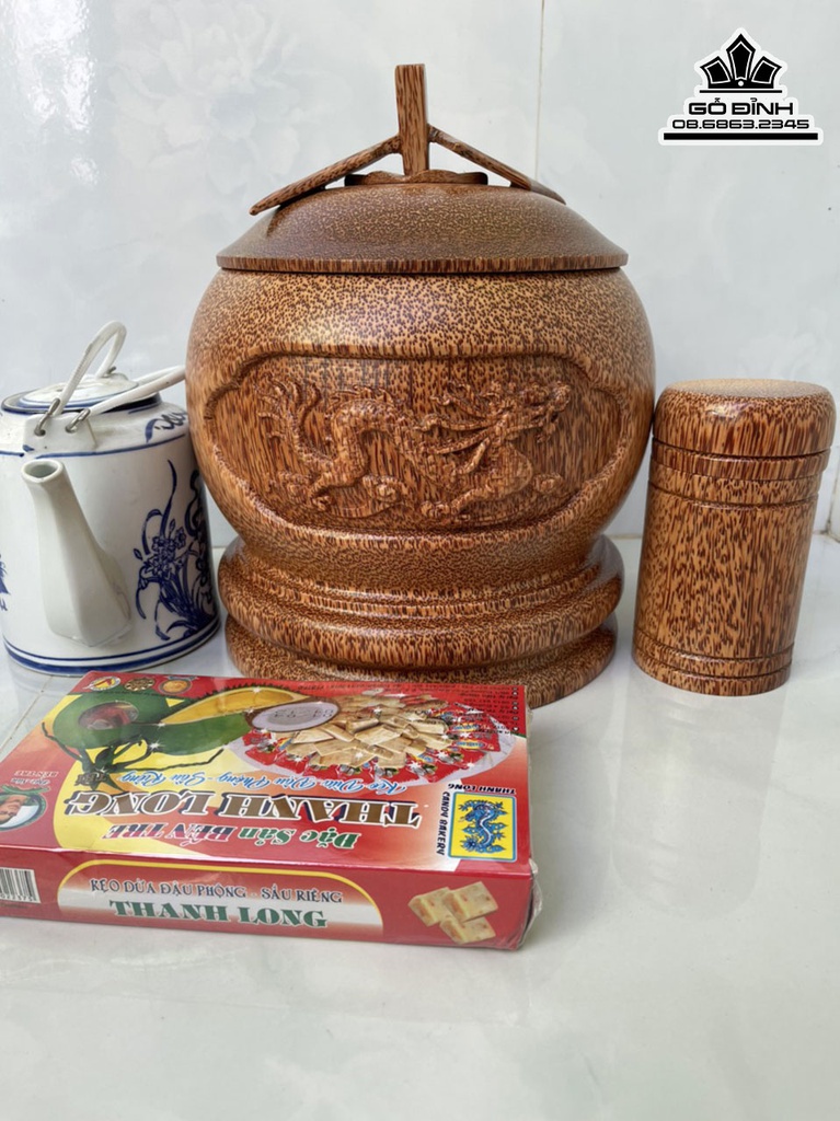 Vỏ Bình Giữ Nhiệt Khắc Rồng Gỗ Dừa Dung Tích 1.5 Lít