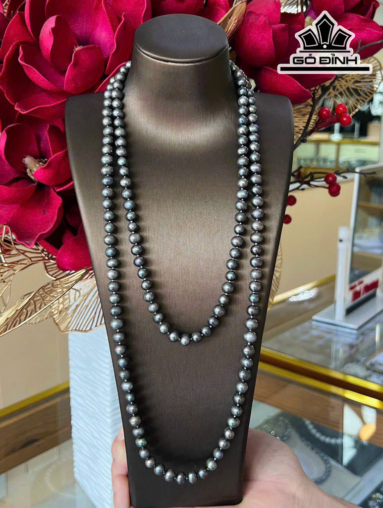 Vòng Cổ Ngọc Trai Oval Ánh Xanh Size 7 - 8 Li