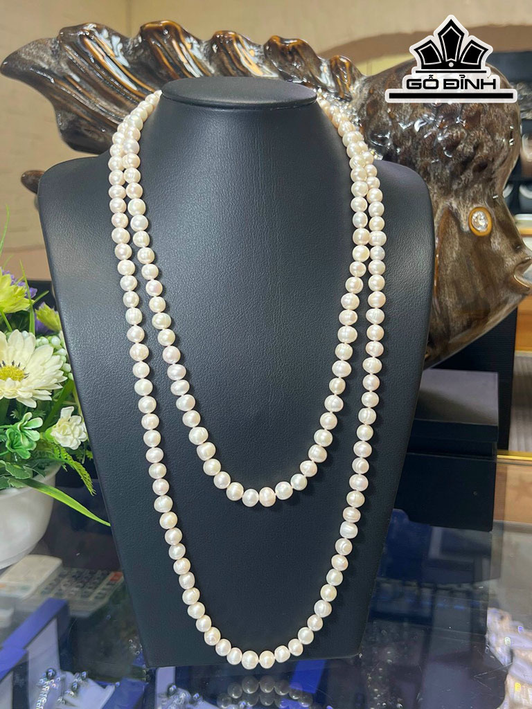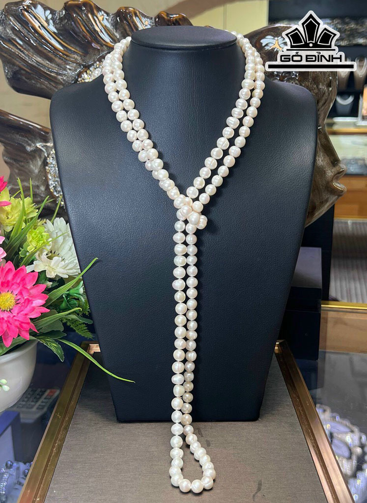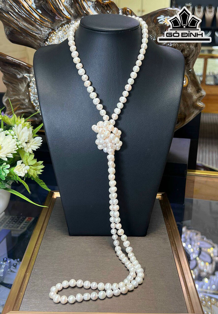 Vòng Cổ Ngọc Trai Ovan Thắt Nút Size 7-8 li