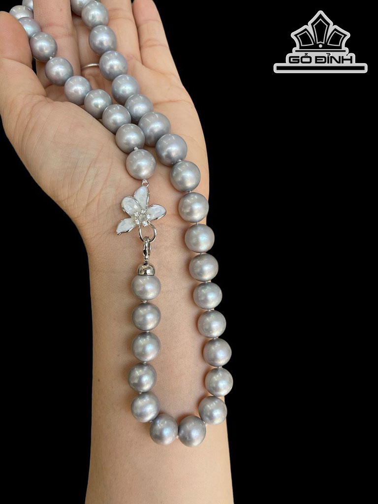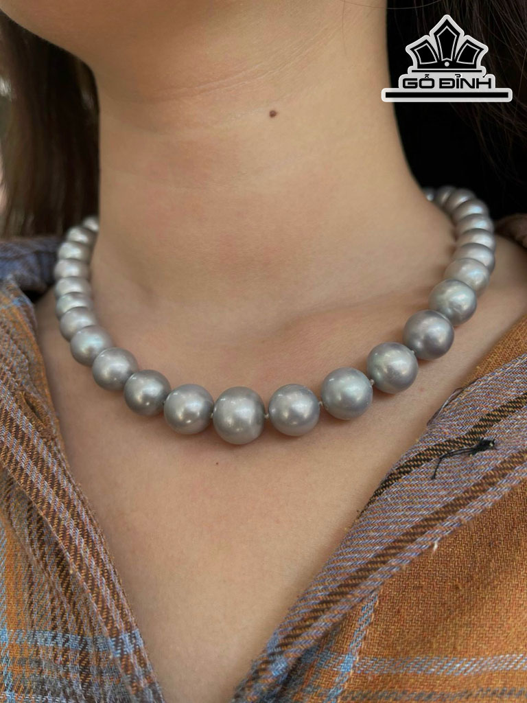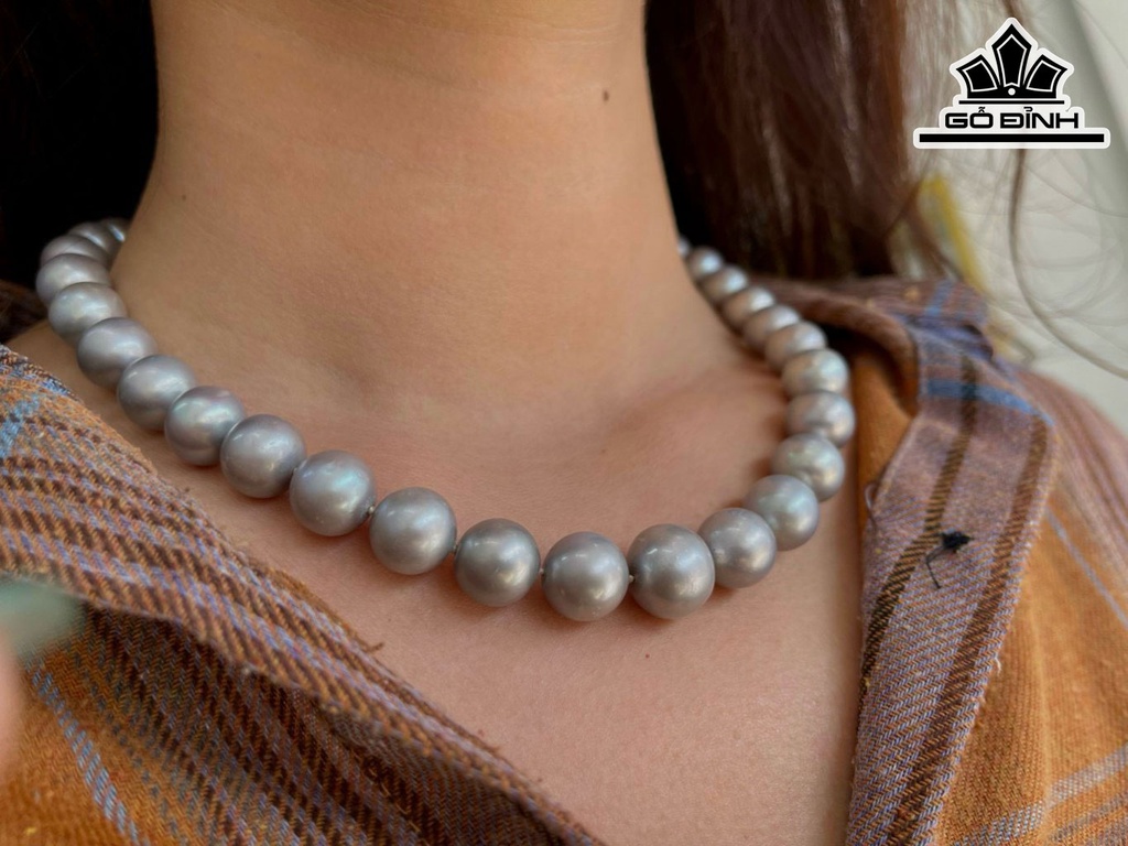Vòng Cổ Ngọc Trai Xám Nước Ngọt Dài 45 cm Size 11.5-13.9 li