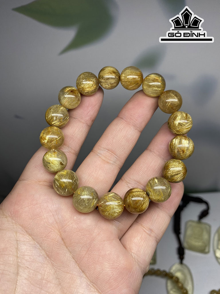 Vòng Tay Đá Thạch Anh Tóc Vàng Đường Kính Hạt 12 (mm)