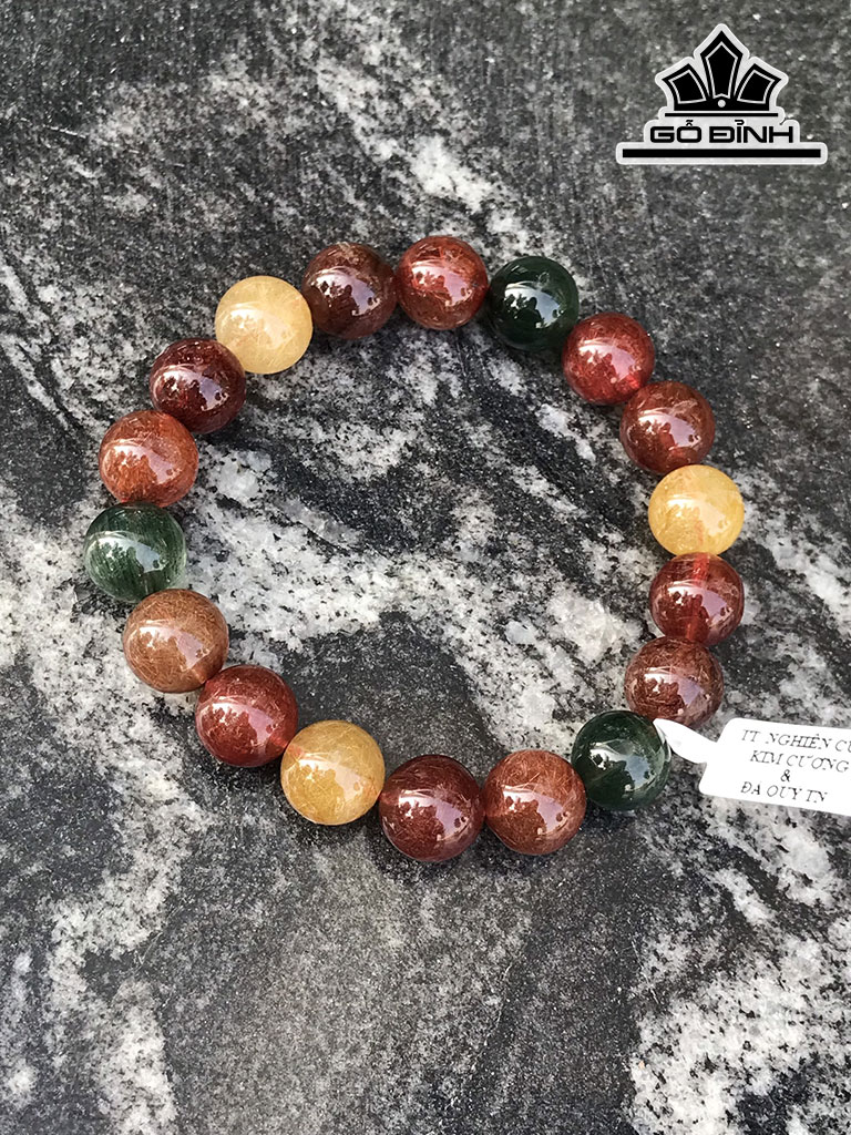 Vòng Tay Đá Thạch Anh Đa Sắc Đường Kính Hạt 12 (mm) 39,92gr