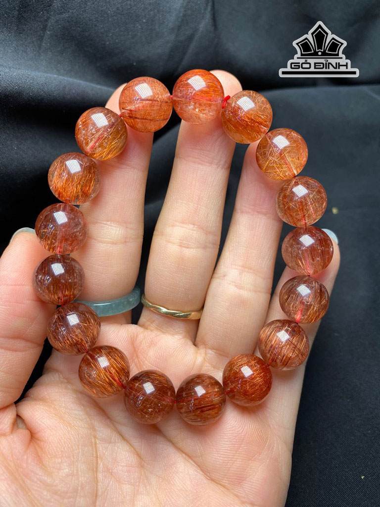 Vòng Tay Đá Thạch Anh Tóc Đỏ Đường Kính Hạt 12,8 (mm)