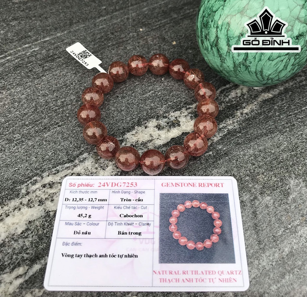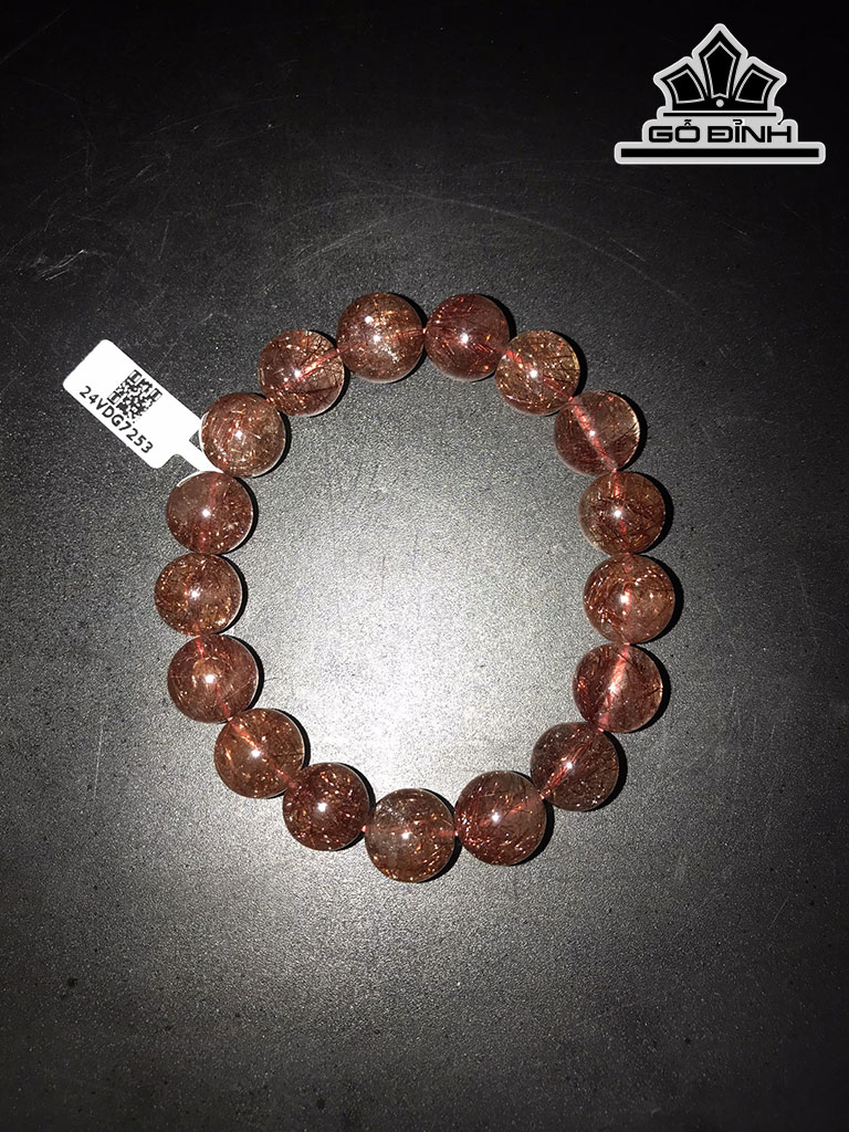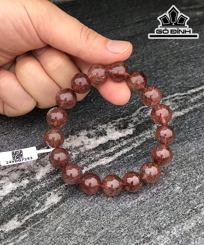 Vòng Tay Đá Thạch Anh Tóc Đỏ Nâu Đường Kính Hạt 12,5 (mm) 45,2g