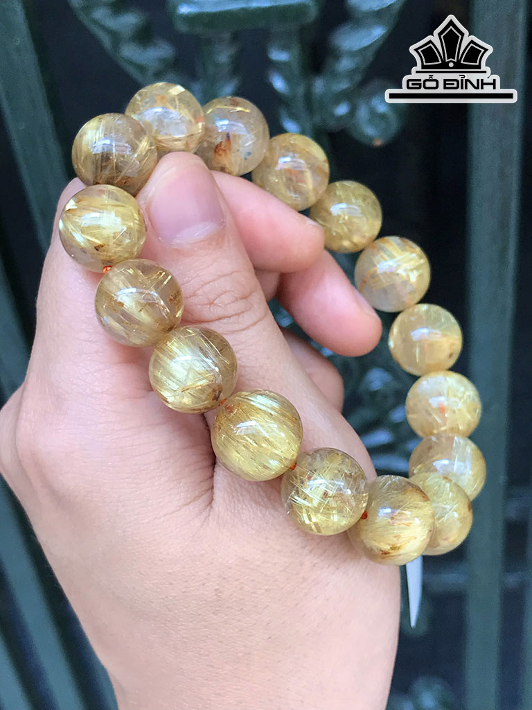 Vòng Tay Đá Thạch Anh Tóc Vàng Đường Kính Hạt 14,6 - 14,89 (mm)
