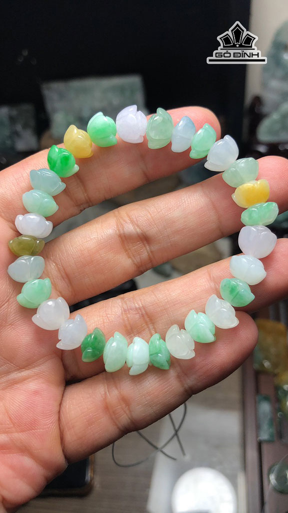 Vòng Tay Hoa Sen Đá Cẩm Thạch Đường Kính 8,5 - 10 (mm) 24g
