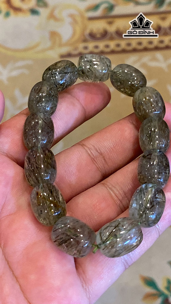 Vòng Tay Lu Thống Đá Thạch Anh Tóc Xanh Cao 12,6 Ngang 15,6 (mm) 56g