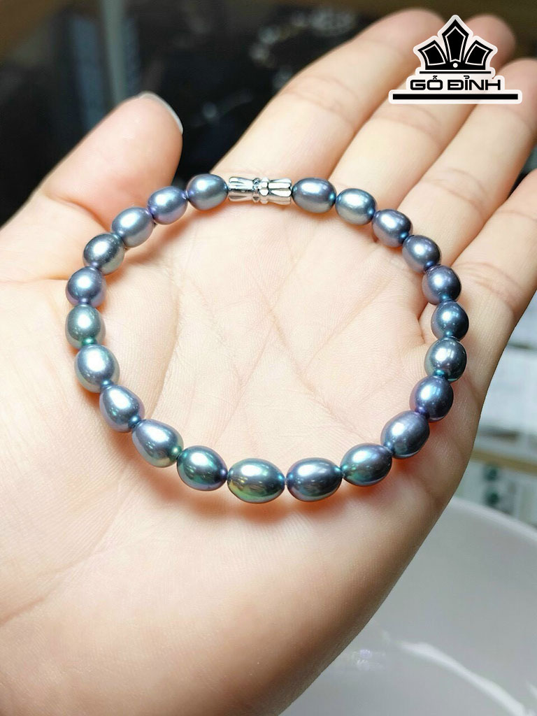 Vòng Tay Ngọc Trai Giọt Nước Xanh Đen Size 5-6 li