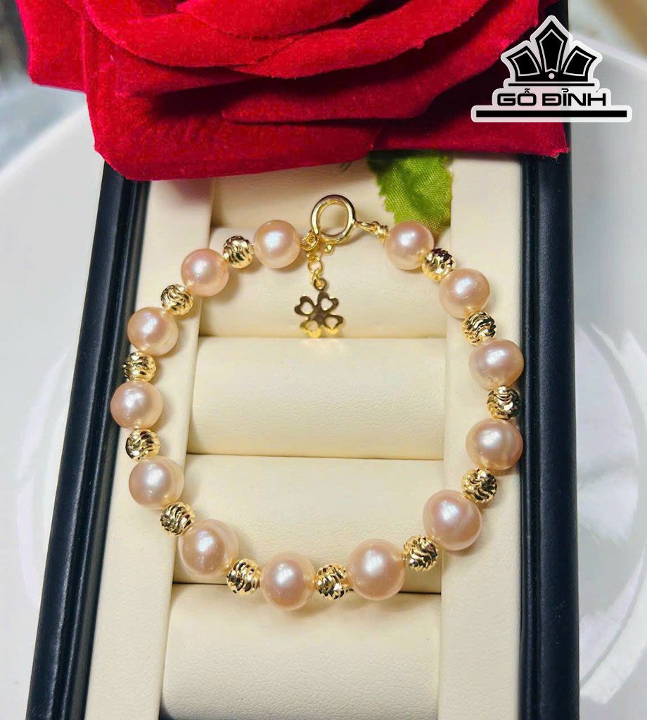 Vòng Tay Ngọc Trai Hồng Cam Mạ Vàng Size 5 Li