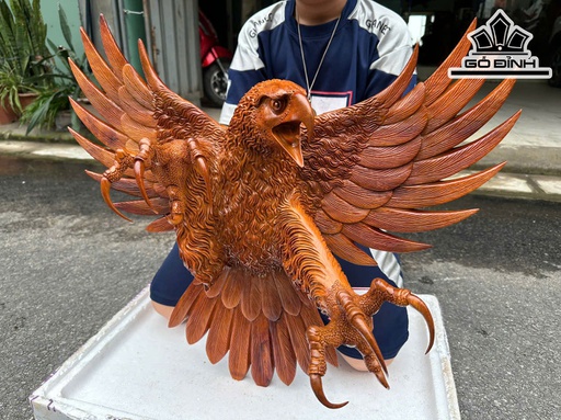 Tượng Báo Săn Mồi Gỗ Hương Ôm Đá Cao 43 Ngang 39 Sâu 36 (cm)